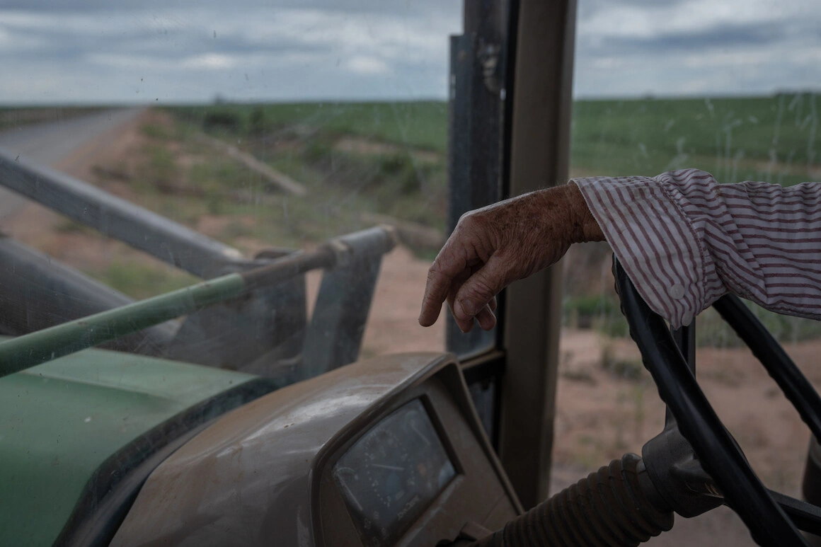 „A fost multă suferință din cauza acestei ferme, Estrondo”, spune Antonio Batista Gomez. Stă drept pe un scaun de plastic verde, pe veranda casei surorii sale. „Au încercat să ne alunge de aici și au vrut să ne ia pământul.” Pe vârful frunții i se sprijină o pălărie mare, de iarbă aurie, iar o cămașă îngrijită, albastră cu dungi, îi acoperă umerii bătrâni. Are 83 de ani și este unul dintre seniorii Geraizeros. Gomez s-a născut și a crescut în Cacimbinha, dar mai târziu s-a mutat într-o altă comunitate, Gato. „Sunt unul dintre cei mai bătrâni oameni de aici. Știu multe, multe lucruri care s-au întâmplat. Și cât de mult am suferit”, adaugă el.