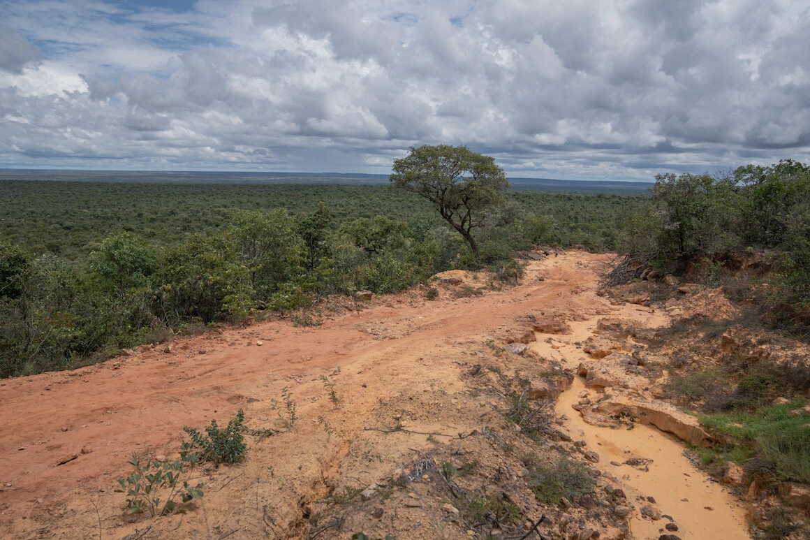 Jeep-ul avansează mai încet acum, evitând gropi adânci, denivelări și crevase pe un drum mult mai accidentat. Peisajul s-a schimbat pe măsură ce pătrundem mai adânc în Cerrado. Arbori mici și arbuști se întind în fața ochilor până întâlnesc orizontul. Singurul lucru care rămâne neschimbat este culoarea drumului de pământ, un portocaliu-roșcat aprins, șerpuind ca un râu de cărămizi. La volan, Amanda este și mai atentă. Speră să nu plouă azi.