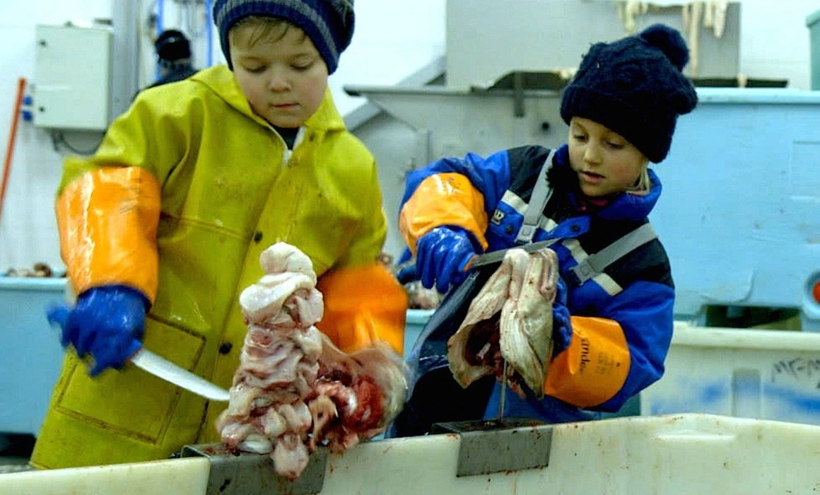 Tongue cutters (de Solveig Melkeraaen) spune povestea unui mic sat din nord, unde piscicultura rămâne principala activitate a tuturor locuitorilor: pescuit, măcelărit, dezosat, feliat, trimis apoi în toată Europa, atât de mult pește și atâta cerere din piață că efortul e unul comunitar și generațional. Conform tradiției, inclusiv copiii au voie să lucreze și nu, nu vorbim de epoca industrială dickensiană, ci de prezent, când sunt puse la punct mecanisme sociale (contracte, învoiri de la școală, remunerare) ca cei mici (de la 6 ani până spre adolescență) să poată contribui.