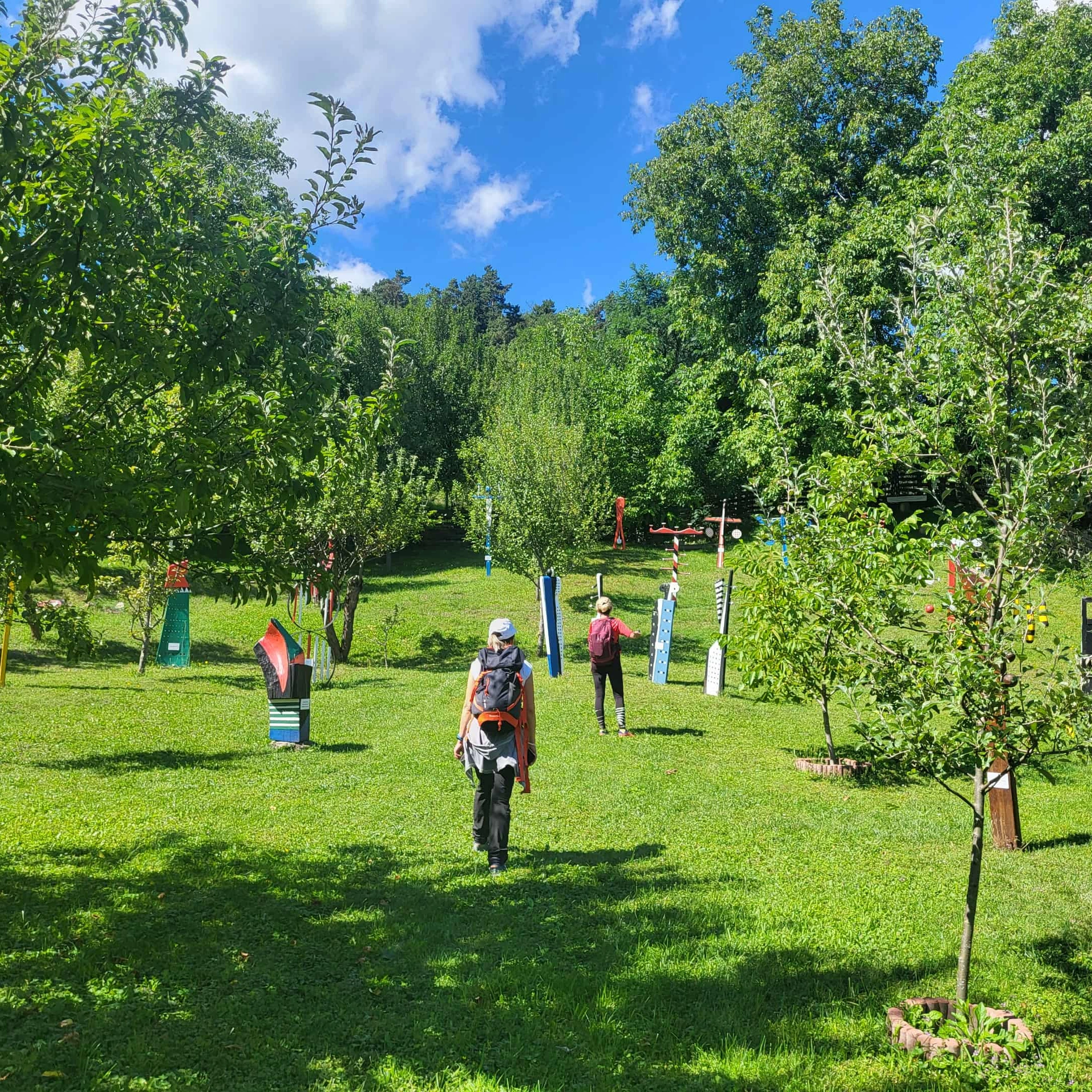Spargem liniștea satului vorbind ca niște adolescenți în pauza mare și ridicăm praful pe uliță. Ne oprește în loc o altă poartă din lemn peste care dorm niște trandafiri roșii. E o casă muzeu. Intrăm în curte, deși nu ne-a invitat nimeni și ne împrăștiem printre sculpturile colorate din lemn răsfirate în toată grădina. „Bună ziua”, ne adună un glas. Artistul Vinczeffy László ne deschide porțile șurii și ne lasă să vedem tablourile. Se așează peste noi atmosfera muzeală și începem să vorbim în șoaptă.