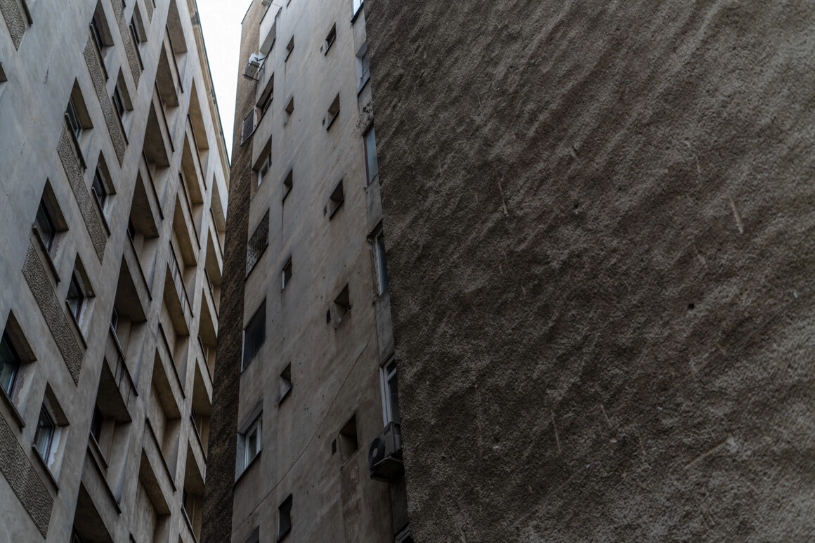 Blocul care pare fără sfârșit, despre care scrie Cărtărescu, este lipit de sediul Poliției și, cât vezi cu ochii, clădirile au aceeași înălțime. Când te uiți în jur, singurul element care se remarcă este urechea autorităților – o imensă antenă care pare un borcan lipit de miile de uși ale apartamentelor blocurilor din jur.