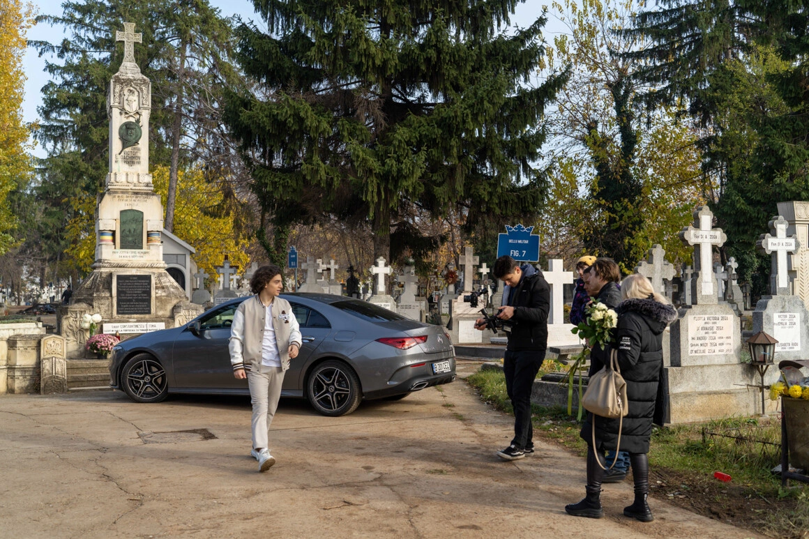 Atent să nu deranjez, mă furișez pe o alee lăturalnică aruncând un ochi spre filmare. În primul rând curios care e subiectul principal, după câteva secunde stabilesc trei scenarii aproape sigure. Fie mașina prea frumoasă, curată și pusă în mijlocul tăcerii, hainele tânărului care coboară din ea – sau, și pe asta mizez cel mai serios, frizura băiatului din cadrul principal.
