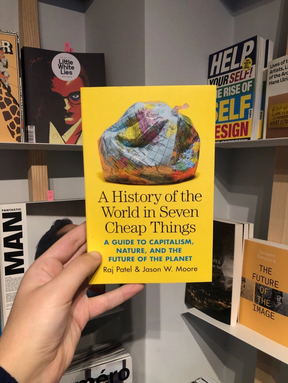 O istorie a lumii în șapte lucruri ieftine este titlul foarte catchy—și poate în egală măsură înșelător—al volumului scos de cei de la Verso și scris de Raj Patel și J.W. Moore. Mai mult decât a fi o analiză economică a ieftinirii ori a deprecierii, cartea e mai degrabă un ghid către înțelegerea capitalismului și a relației pe care modelul economic ce domină planeta de secole o are cu natura și viitorul planetei. Iar prin intermediul a șapte componente cruciale ale societății contemporane (natură, bani, muncă, grijă, mâncare, energie, viață), Patel (scriitor și activist britanic, considerat un rock star al scrierilor despre justiție socială) și Moore (istoric al mediului, geograf și profesor de sociologie american) reușesc să desacralizeze cu brio forțele sistemice care au adus civilizația modernă în pragul colapsului ecologic.