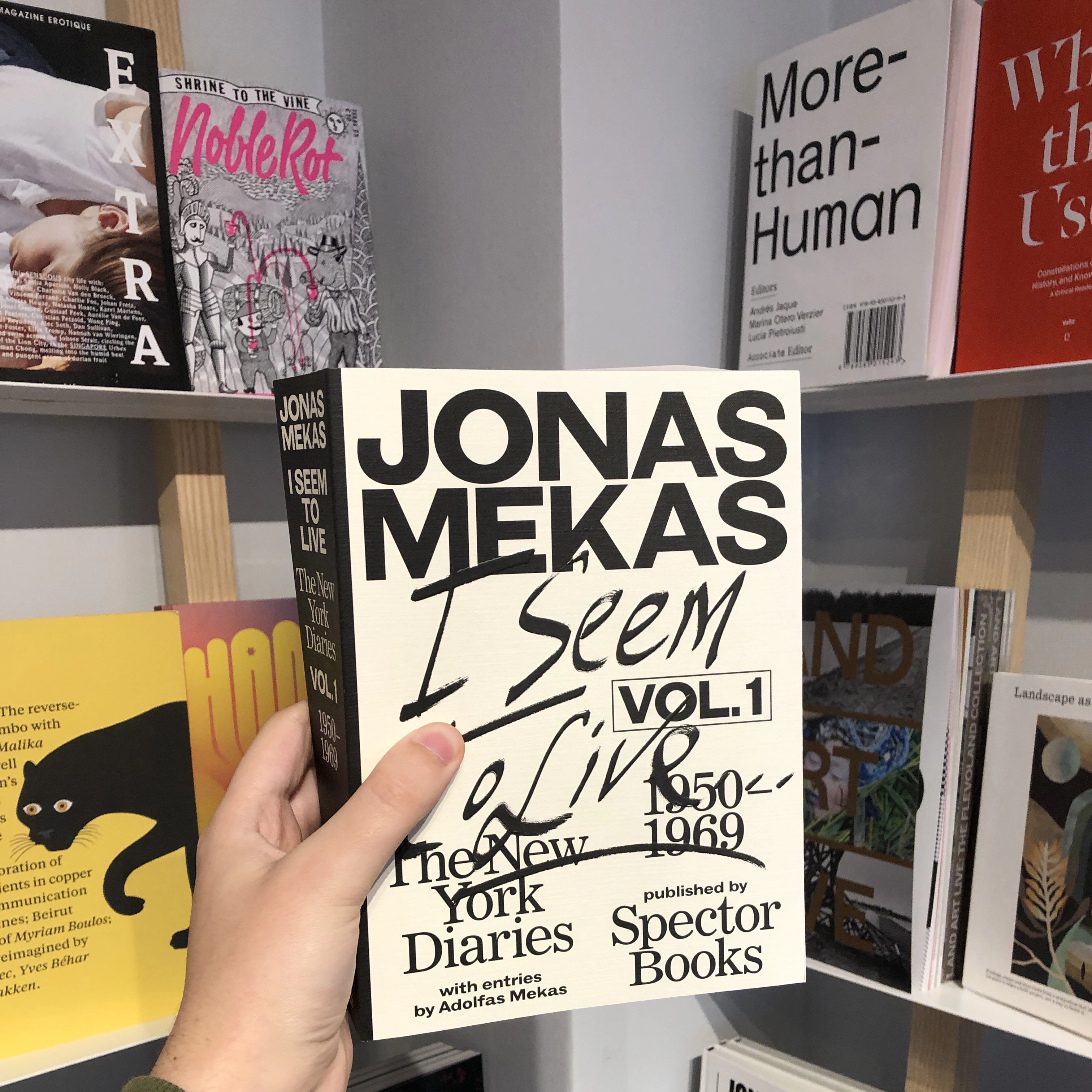 Alegem să vorbim despre două cărți tocmai datorită hibridității lui Mekas: dacă I Had Nowhere to Go este autobiografică, dureroasă și alienantă, analizează gradual și la nivel micro propria sfâșiere de Europa nazistă, este poetică și cotidiană, pe alocuri abstractă și lirică, rememorează copilăria și supraviețuirea în taberele de refugiați și primii ani la New York și poate fi folosită pentru a-i înțelege filmele, I Seem to Live se află la polul opus: enciclopedică ca dimensiune (de aproape 1000 de pagini), pragmatică și condensată (atent structurată cronologic, aproape algoritmică), critică (conține atât eseuri și critică de film, cât și scurte pasaje de diaristică și corespondență cu celebrități precum scriitorii Arthur Miller și Rolf Dieter Brinkmann ori regizorii Kenneth Anger și Pier Paolo Pasolini) și poate fi folosită pentru a-i înțelege viziunea asupra cinemaului.