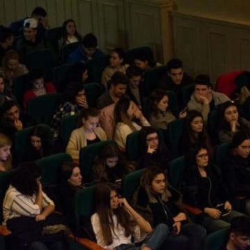 „Nu vrem să vorbim dacă regimul comunist a fost unul bun sau unul rău, ci să ne uităm cu un ochi critic la filmele astea. Să vedem cum se trăia atunci și cum se prezenta realitatea”, spune Jo Brăilescu în fața unei săli pline cu elevi de la Spiru. „Mi se pare mult mai important să aflăm care e miza care contează pentru voi, care sunt subiectele care vă ating, decât să vă spunem că un film e mai bun ca altul.”