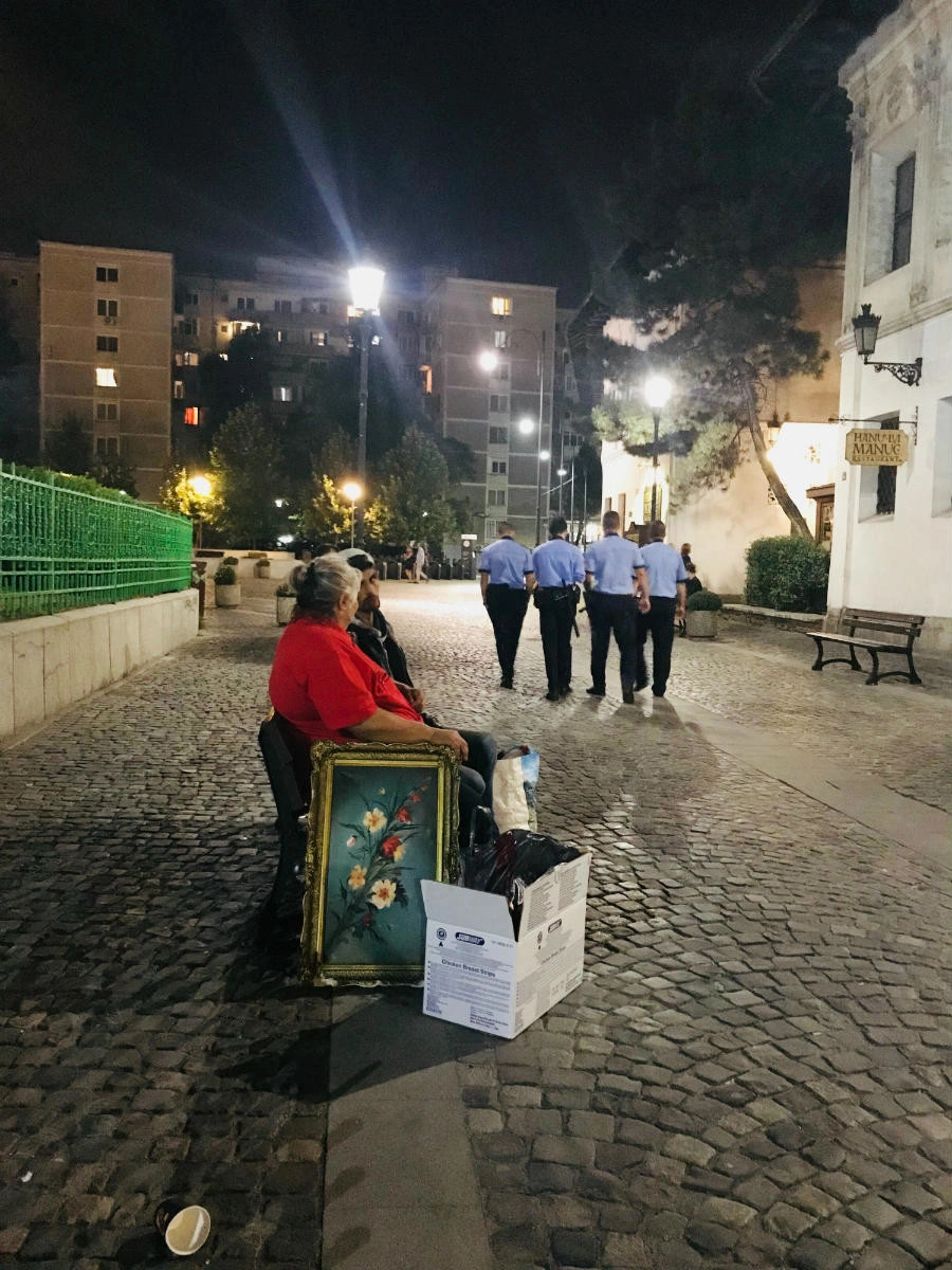 Puțin mai încolo, lângă Fire, intrăm în vorbă cu câțiva turiști din State și Suedia, care se plâng că „e cam turistic Centrul Vechi”. „Poți să iei oricare stradă de aici și să o muți într-o altă capitală europeană și nu o să vezi mari diferențe. Are cam același vibe”, zice Ida, o tipă din Stockholm. „Îmi place în România, dar îmi imaginez că n-ai cum să descoperi Bucureștiul dacă te învârți doar pe aici, pe străzile astea”, mai spune ea. „Aici chiar ai nevoie de cineva care să-ți arate locurile ascunse.”