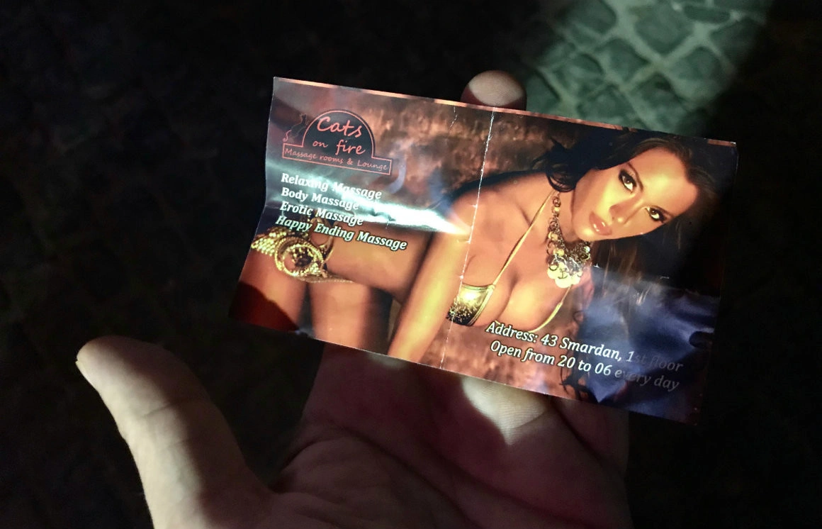 Terminăm micii și o luăm spre Șelari, unde deja e mai animată treaba. Parfumuri puternice, miros de gyros, beat-uri electro și chelneriţe care trag de noi să mâncăm ribs şi „să bem o bere rece”. O tipă brunetă, cu body negru din latex și cizme până la genunchi, dansează în vitrina de la Amsterdam. Mă suprinde faptul că la restaurantul Dracula Medieval Feast - care e lung cât un poligon de tragere, nu sunt clienți deloc. În schimb, au în meniu cocoșei de munte.