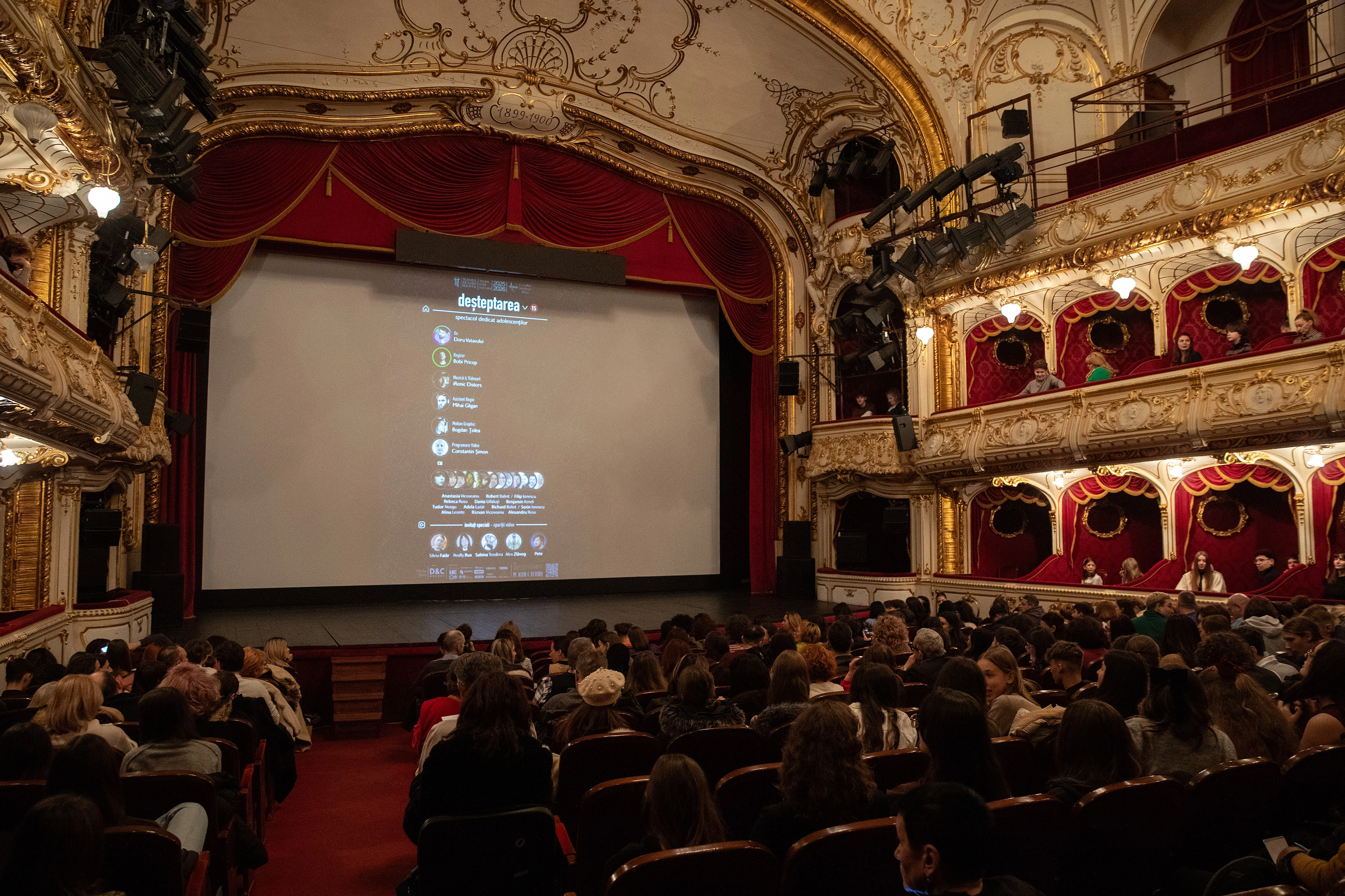 Într-o sală cu catifea roșie, publicul venit să vadă spectacolul deșteptarea primește un scurt disclaimer: urmează să audă înjurături și multă romgleză. Oamenii sunt însă invitați să rămână deschiși: în această poveste există monștri mult mai mari decât niște simple cuvinte. Ascultă toți nemișcați, încordați pe scaune. În sală se află părinți și copii, adolescenți și adulți, și toți aplaudă, în semn de înțelegere.