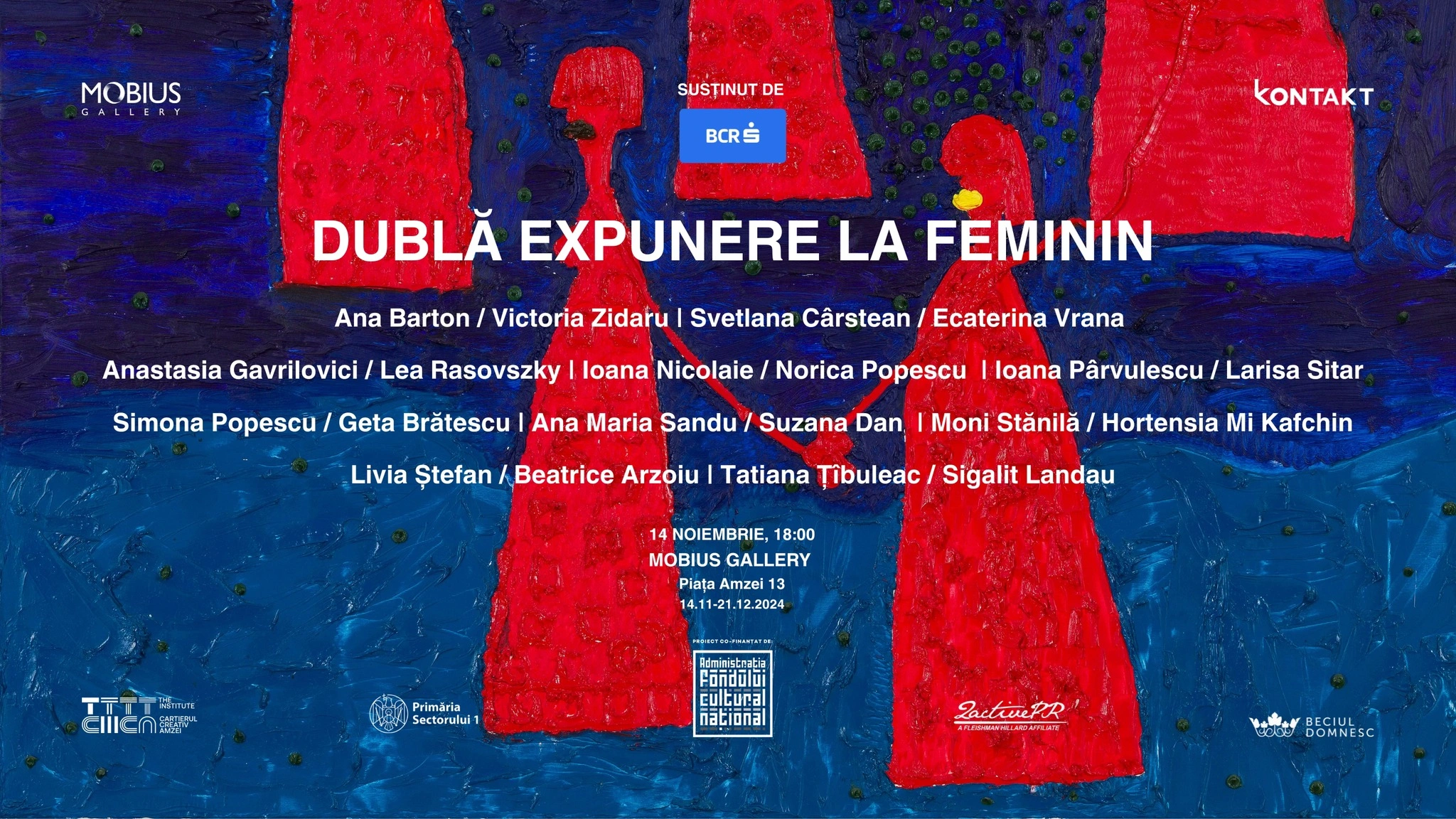 DUBLĂ EXPUNERE LA FEMININ reunește câteva dintre cele mai importante voci feminine din literatura și arta contemporană din România. Inițiat și realizat pentru prima dată în 2014, de către Asociația Kontakt, demersul propune explorarea narativelor din zona artelor vizuale și reformularea lor în limbaj literar. Ediția din 2024 reia ideea originală, însă, de această dată, vocile sunt exclusiv feminine. Zece scriitoare se întâlnesc într-un spațiu liminal cu lucrările a zece artiste. Fiecare autoare a fost invitată să scrie un text deslușit în urma unei investigații personale, dintr-un număr infinit de narațiuni posibile pe care o operă de artă îl poate genera.