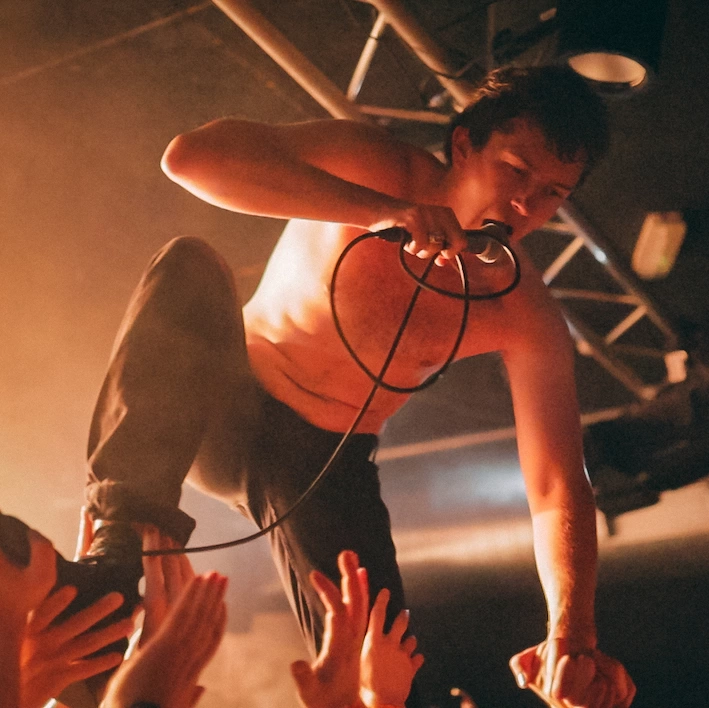 „Uh, o dată mi-am sucit glezna pe scenă. Și Josh (chitaristul) și-a rupt piciorul pe scenă. Dar de obicei doar mă aleg cu vânătăi și tăieturi”, povestește solistul Charlie Steen, chiar înainte să ne spună ce cărți le-au influențat albumele (trilogia Wolf Hall de Hilary Mantel pentru Drunk Tank Pink, Lonesome Dove de Larry McMurtry și tragedii antice grecești la ultimul album food for worms). Sunt cunoscuți pentru modul foarte punk în care concentrează. Clasicele scheme, cu aruncat în mulțime, urcat pe decor sau dat din cap alături de fani. La Zagreb, Charlie a mers literal pe mulțime.