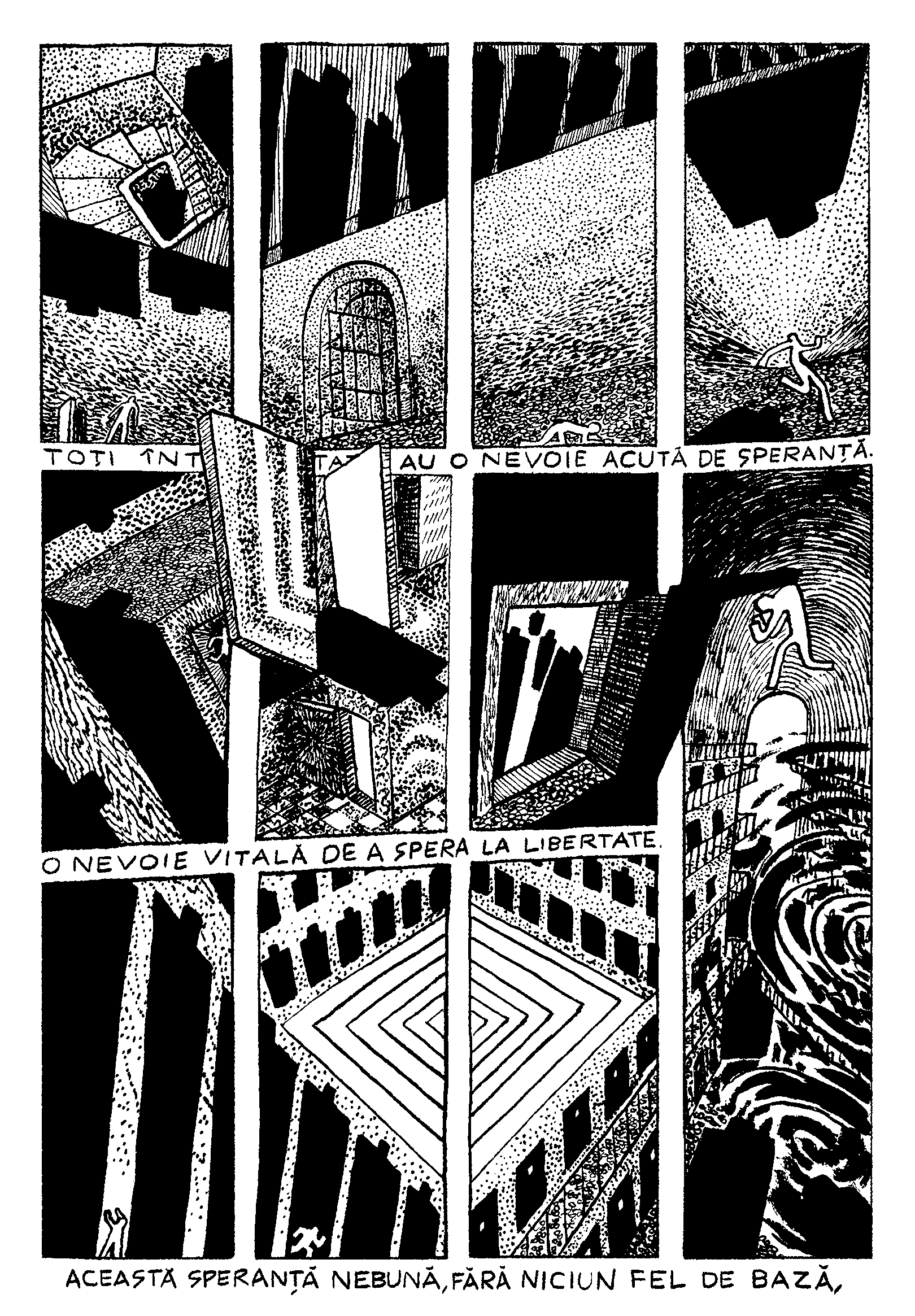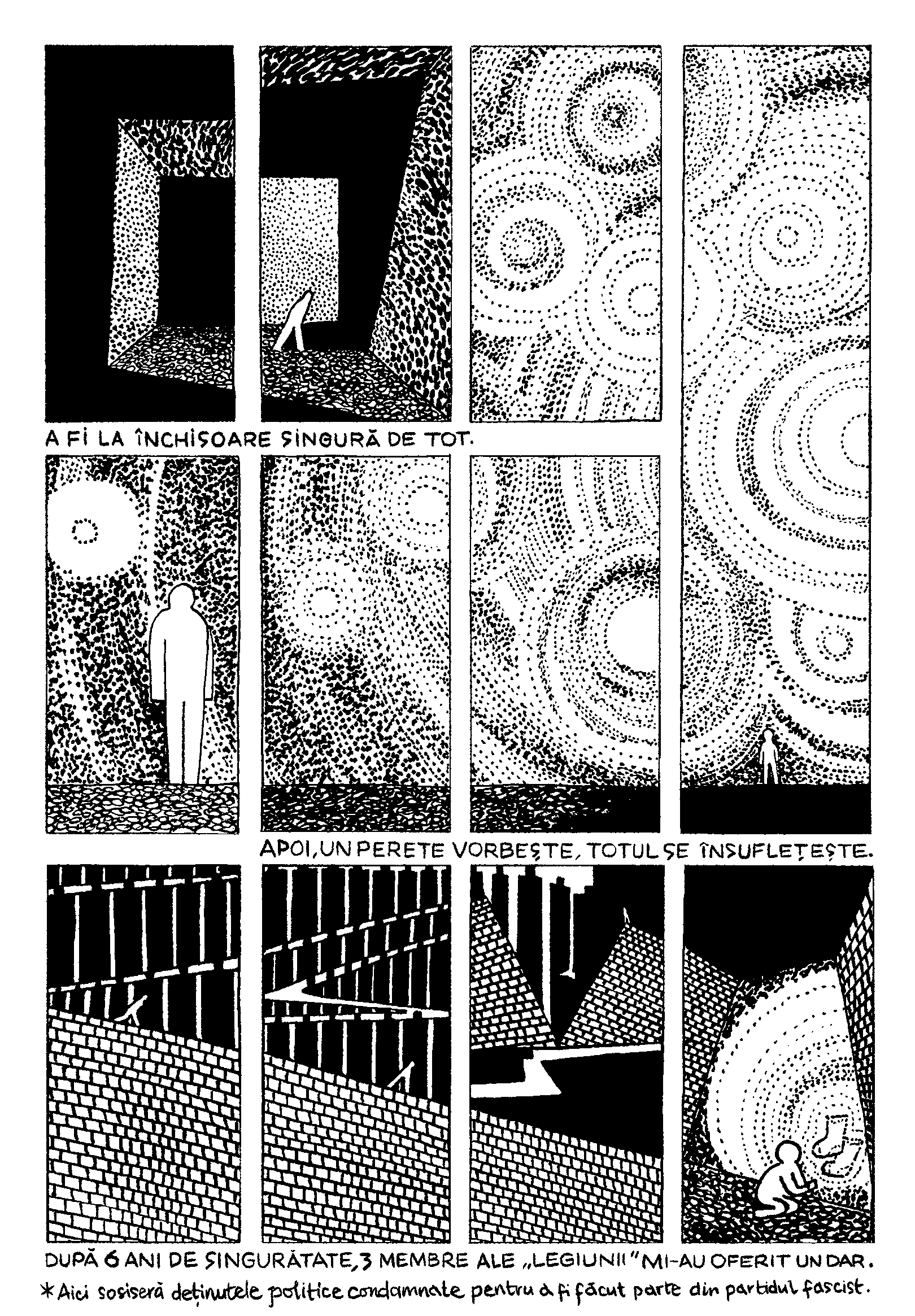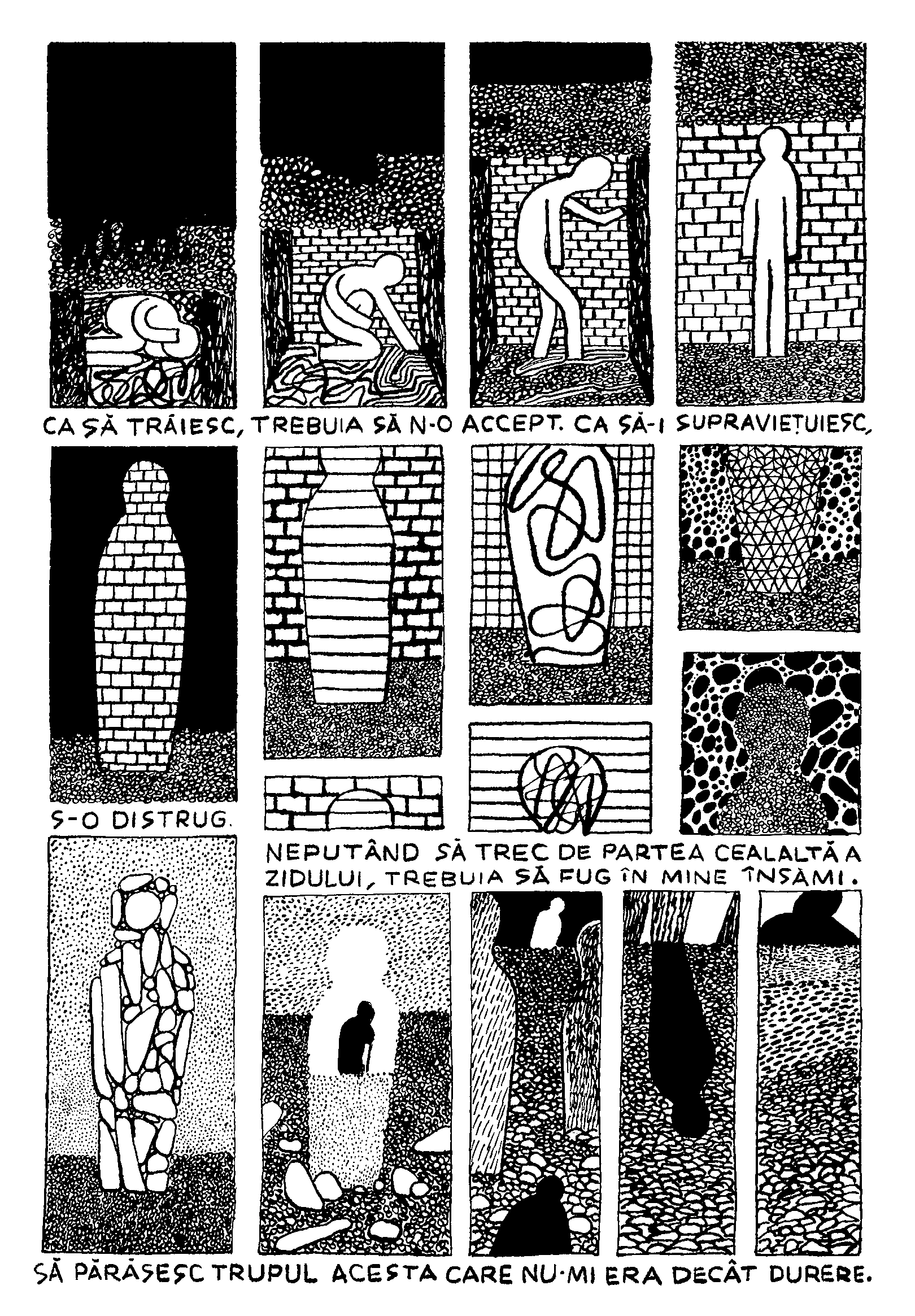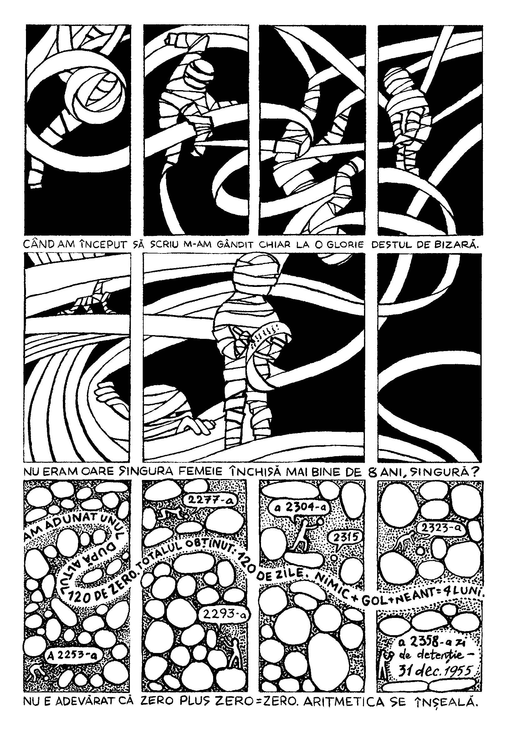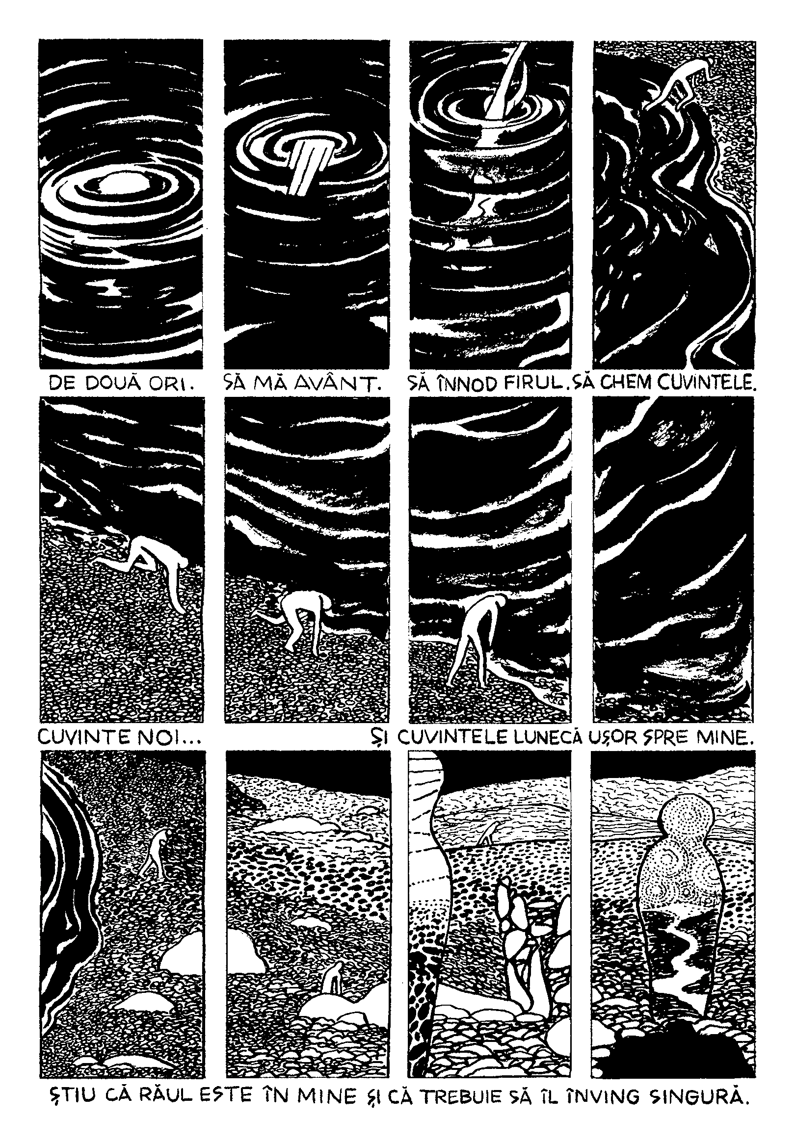 Nu știu dacă am reușit să-i onorez munca, dar am căutat să-i traduc experiența prin secvențe ilustrate, într-o formă mai apropiată de generațiile vitezei, pentru că energia și rezistența acestei vizionare sunt vitale dacă e să mergem înainte, dincolo de zidurile urii.