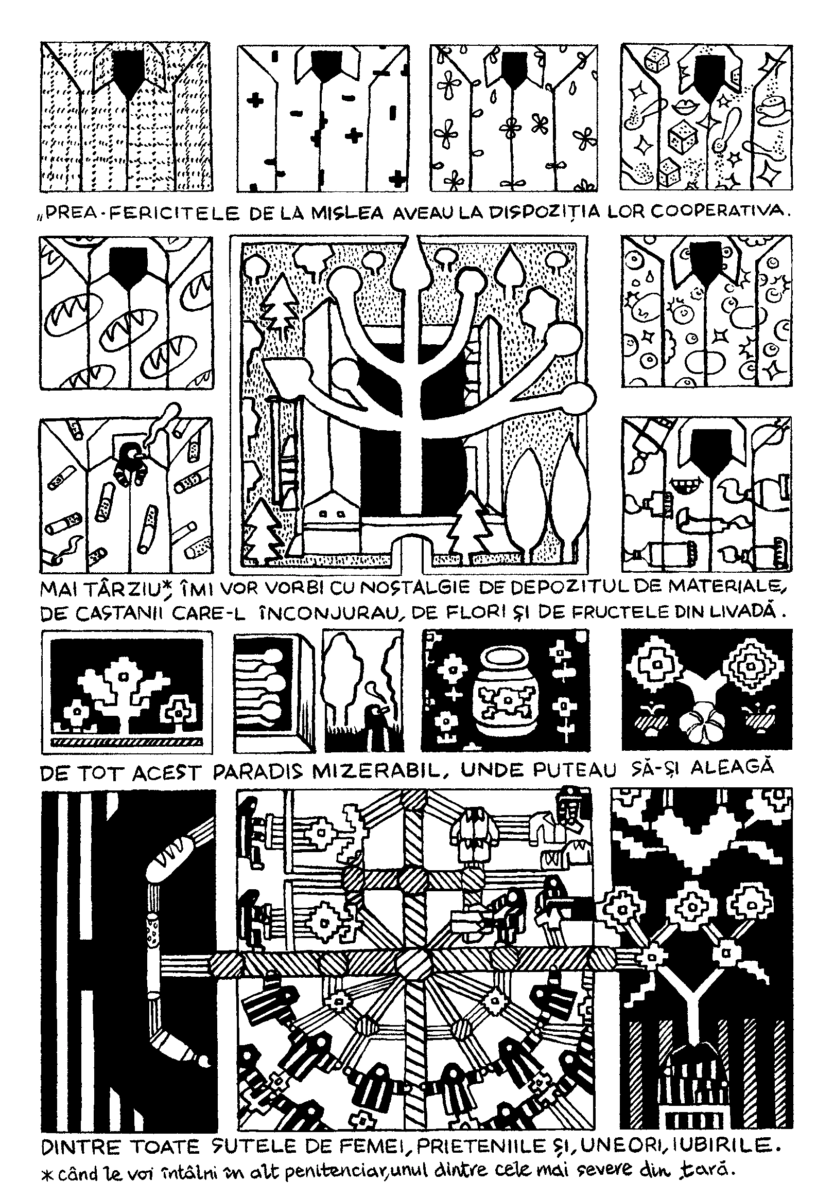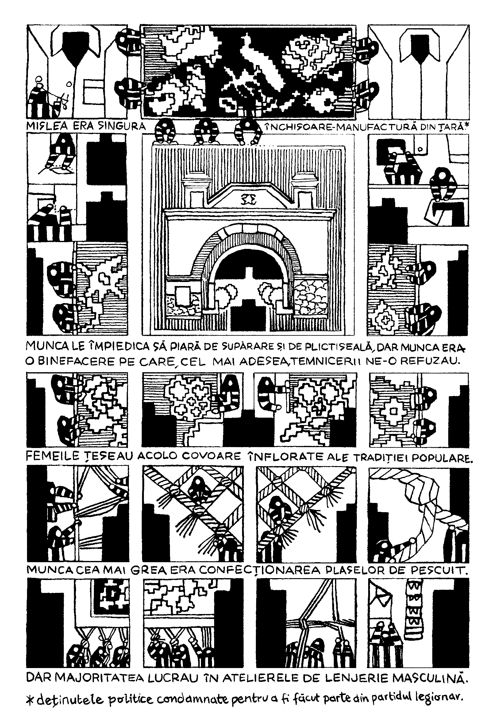 Aurelie Morillas, artistă care lucrează cu obiecte textile, mi-a vorbit atunci despre Evadarea tăcută, prima carte de memorii publicată de această artistă al cărei talent nu cunoștea limite, dar care cu greu și-a găsit un loc în societate după eliberare. În acest volum, căruia i-a urmat Evadarea imposibilă, o rememorare a anilor 1957-1961 petrecuți în Penitenciarul politic de femei Miercurea-Ciuc, Constante a țesut din memorie angoasa vieții în totală izolare, unde și-a inventat ca mecanism de supraviețuire „scrierea tăcută” – o formă de a-și construi și conserva narațiunile strict într-un plan abstract, al minții. Mi-a fost frică de ce aveam să descopăr printre cele peste 200 de pagini ale cărții, dar până la urmă am plonjat în ea. Eram disperată să găsesc un bob de speranță în miezul furtunii care ne întunecă orizonturile. Sper ca imaginile extrase aici, alături de câteva fragmente, să le dea curaj cititorilor.