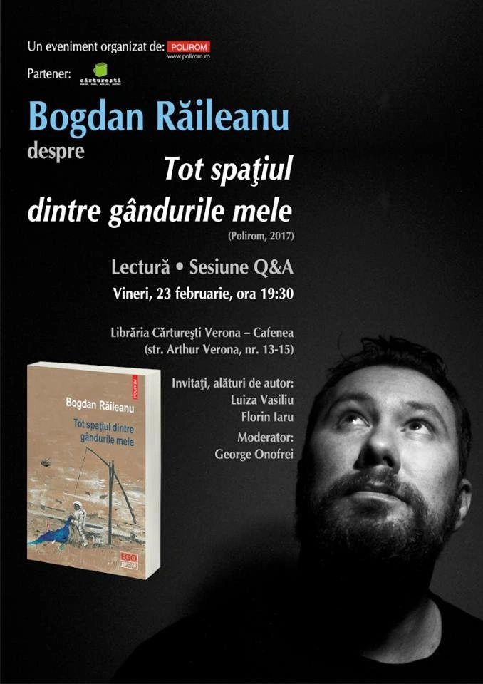 Lansare Bogdan Răileanu, Tot spațiul dintre gândurile mele, Cărturești Verona, vineri, 23 februarie, de la ora 19.30