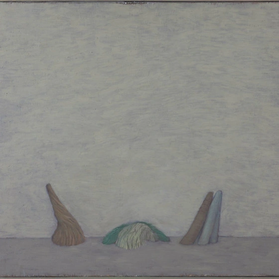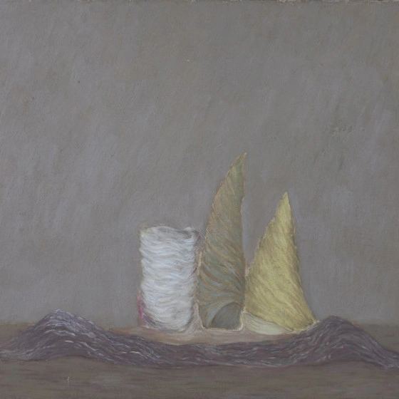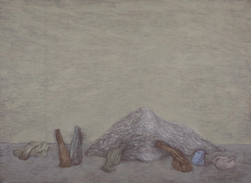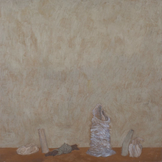 Dacă ar fi să scriem o fișă de inventar, ea ar consemna următoarele: 15 picturi pe pânză, majoritatea rectangulare, de dimensiuni între 80 x 80 și 90 x 90 centimetri. Naturi moarte. O tratare a spațiului care trimite la bidimensionalitate, cu mici accente tridimensionale – adică micile obiecte care par strivite, ori par că se ascund sau sunt complet refugiate între fundalul care acoperă aproape toată imaginea și planul orizontal. Oricum, un spațiu care nu depășește extensia în adâncime a respectivelor obiecte, care par niște torsade de material textil, niște conuri sau niște resturi colecționate de artistă de pe plaja de la 2 Mai. Compoziția e mereu aceeași. Deasupra, un fundal mare monocrom, dedesubt o mică fâșie orizontală, între care se desfășoară obiectele bizare, diforme, greu de numit, într-un aranjament vizual mereu diferit de la o pictură la alta.