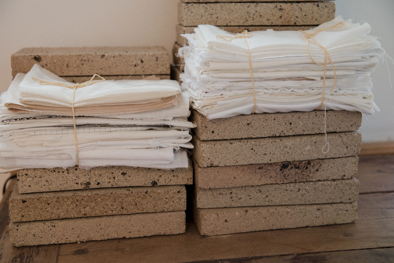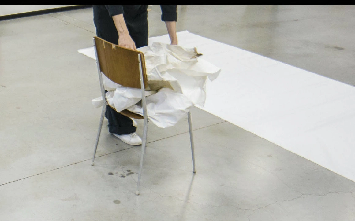 Scaune pe care, sub care, lângă care – există bucăți mototolite de pânză. Sau suluri de material textil. Sau cotoarele goale ale acestor suluri, care sunt de fapt niște cilindri de carton gros.