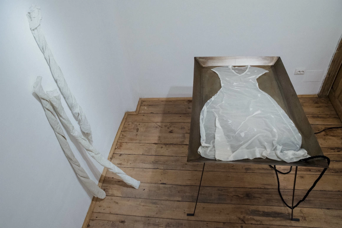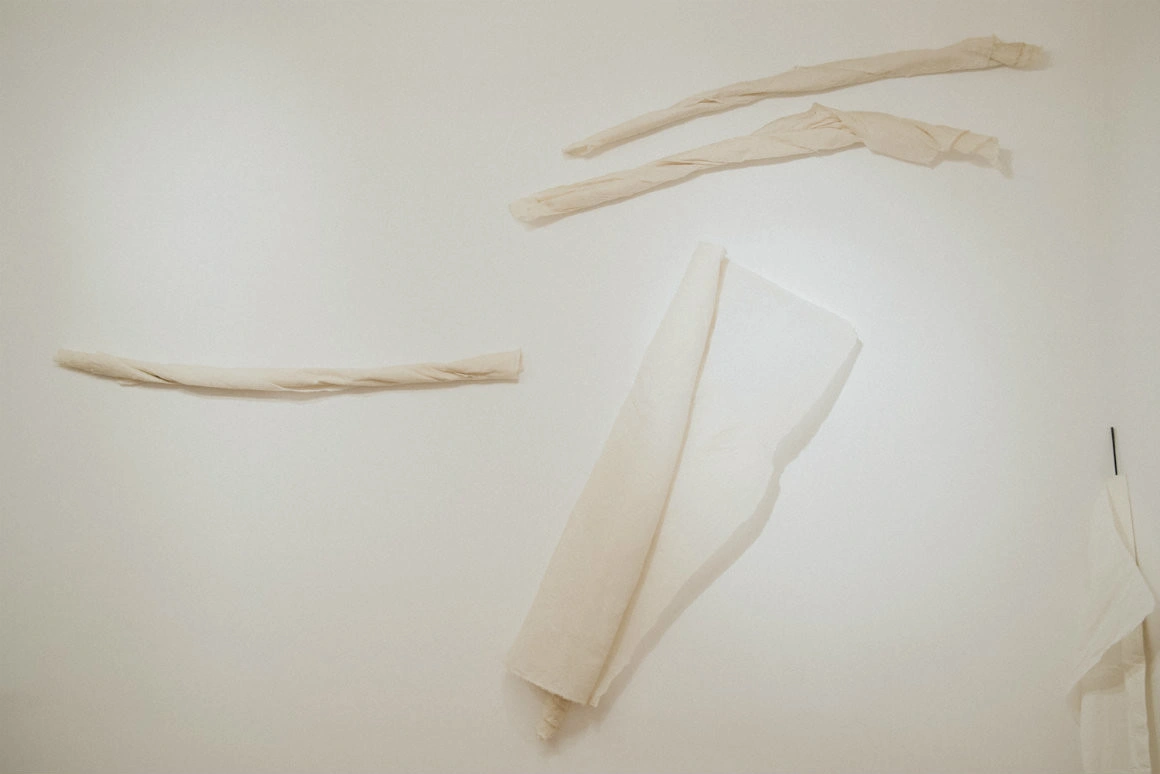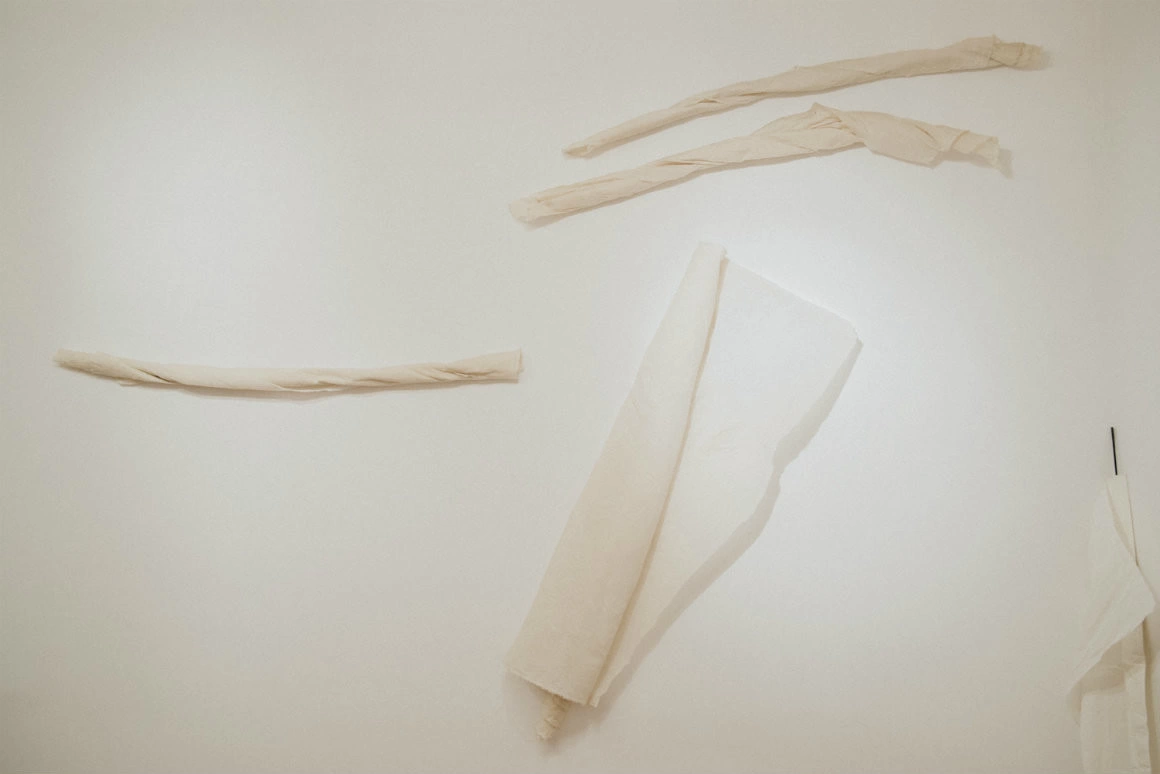 Adelina Ivan lucrează ca designer vestimentar și ca artist contemporan. Atât în munca ei de designer, cât și în cea de artist, folosește o paletă redusă la alb și negru. În ambele domenii lucrează cu textile. Și pentru mine începe să fie destul de clar că, odată cu această expoziție de la galeria Anca Poterașu, artista Adelina Ivan încearcă să-și găsească locul în lunga serie de artiste contemporane care au lucrat cu materiale moi, care trimit la corp și la feminintate. Mă gândesc aici la Eva Hesse sau la Geta Brătescu.