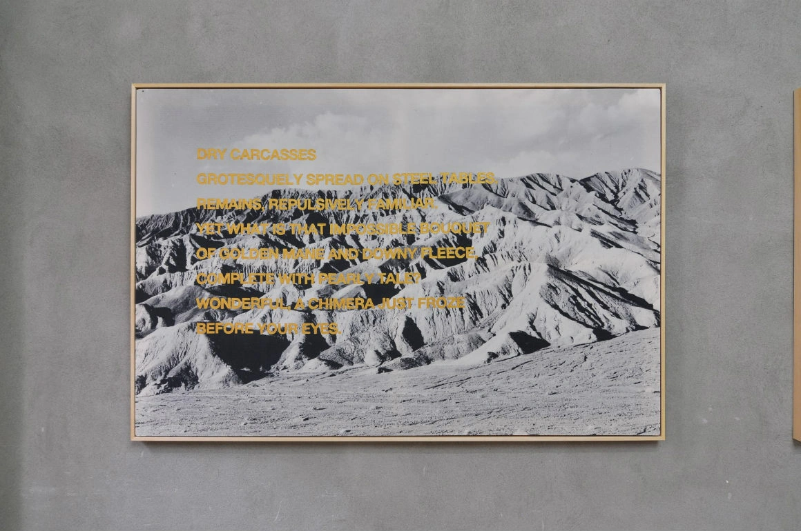 În sensul ăsta, seriile de picturi ar trebui să fie niște naturi moarte, refolosind astfel un gen minor din pictura istorică într-un sens contemporan. Problema e, totuși, că în prima cameră avem o serie de peisaje, la nivel de fotografie, chiar dacă textul e un inventar de obiecte inerte.
