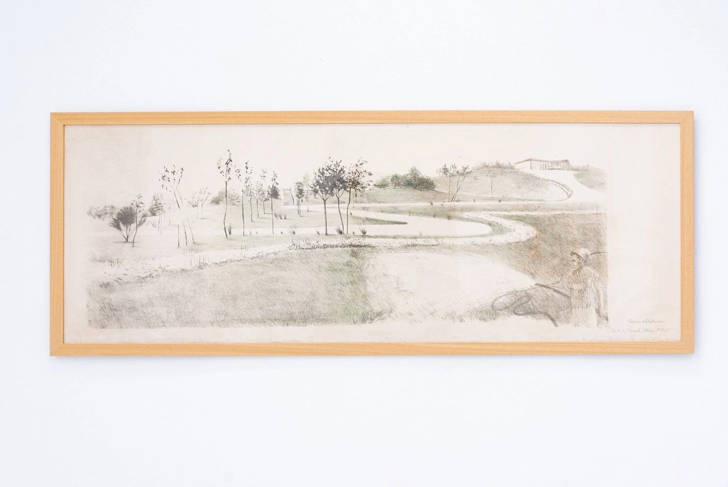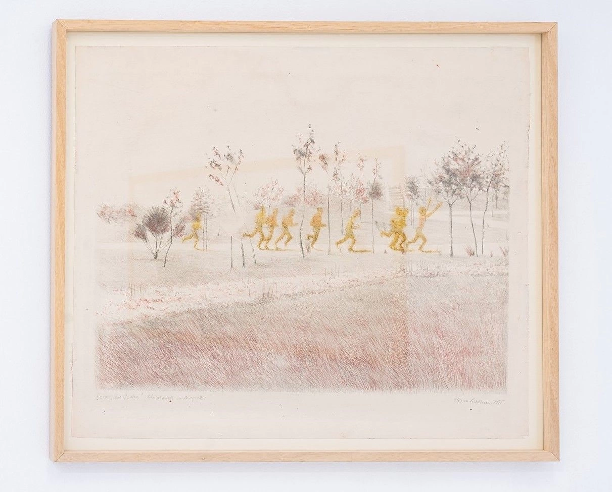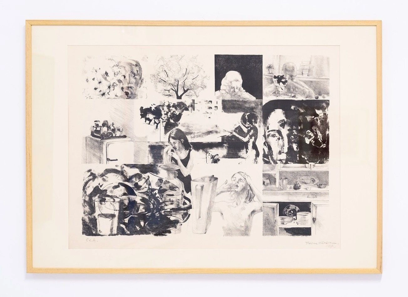 Când privești lucrarea de mai jos, cu ideea că lucrul pe care îl vezi e un desen pe hârtie, ea pare destul de banală. În momentul în care eticheta spune că e o litografie și în minte se face calculul conform căruia firele de iarbă din partea de jos a imaginii nu au fost desenate cu creionul pe acea hârtie, ci imaginea întreagă a fost imprimată cu totul, flosind ca bază alte imagini, invizibile acum, percepția se schimbă radical. Apare o observație atentă a aparentei materialității a desenului pe hârtie ca iluzie optică generată de traducerea în alt mediu vizual. Tipul ăsta de distanțare e o muncă conceptuală asupra mediilor vizuale din anii 1970 – 1980 pe care eu nu am mai văzut-o la alți artiști români lucând cu litografia. Tratarea e frontală, medialitatea e atacată direct, iar iluzia unui mediu e susținută de materialitatea altuia într-un mod pe care doar eticheta o dezvăluie, altfel iluzia rămânând în picioare, jocul aparențelor fiind extrem de puternic.