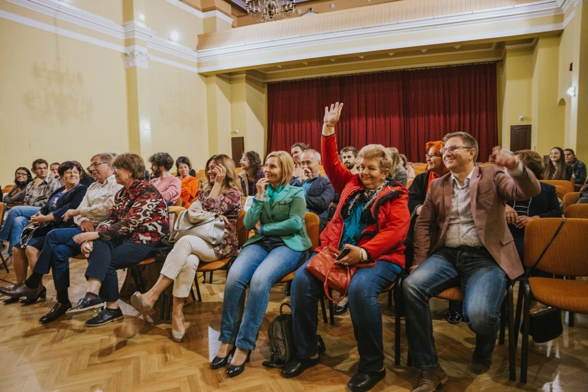 „Dacă nu învățați de mici, nu învățați niciodată”, își ceartă o mamă copiii că nu stau cuminți la coadă. Pentru că se intră pe bază de rezervare, și mulți dintre cei mai în vârstă nu au știut cum să-și facă una, se creează buluc la intrare. Unii au aflat de eveniment din ziar, alții de la radio, cei mai mulți de la cunoștințe. E un oraș mic, se duce vestea repede, chiar și când vine vorba de evenimente culturale.