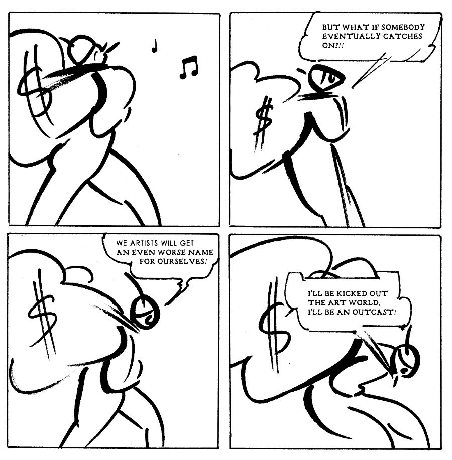 Da. Și partea mai abstractă nu a fost intenționată. Pur și simplu am găsit mai simplu să simplific figura umană. Nu m-am gândit la abstractizare teoretică. Așa am făcut atunci, așa fac acum și încerc să găsesc echilibru și să nu las mesajul să fie pur descriptiv. Cititorii nu sunt idioți, noi nu suntem idioți. Minții îi place un pic să se lege scrisul cu imaginea, să se facă un tot și nu să aibă cheia într-una sau în alta. Îi place un pic de efort. Dacă e prea mult nu merge pentru toată lumea. Nu iese din sfera artelor.
