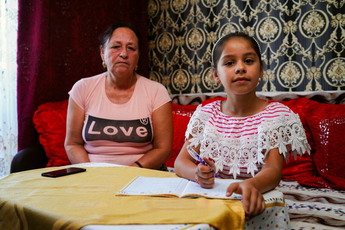 Acum e foarte greu și școala online… Noi nu ne pricepem deloc, nu putem să o ajutăm. Și ea e foarte emotivă, se blochează la teste, îi este greu. Noi încercăm să-i facem toate poftele. Să fie ceva bun și pentru ea”, spune bunica Georgeta.