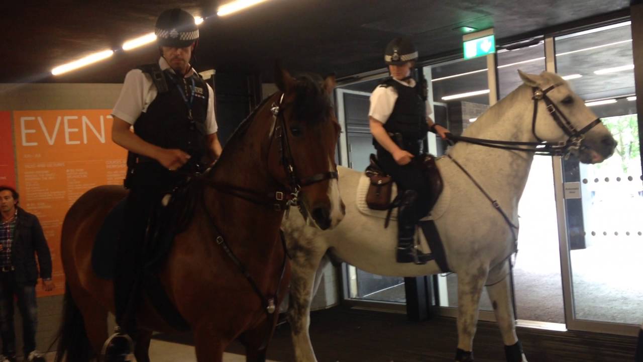 Performance-ul conceput de Tania Bruguera analizează, spune artista, efectul mass media asupra indivizilor, de cele mai multe ori „anesteziați” de spam-ul deghizat în informație. Tatlin's Whisper #5 face parte dintr-o serie mai mare, în care sunt reconstituite scene clișeizate prin repetiția lor obsedată pe ecrane. În cazul de față, este vorba de apariția unor polițiști călare, imagine asociată cu discursul siguranței publice, dar mai ales cu tensiunea ciocnirilor de stradă, unde forțele de ordine fac de cele mai multe ori regulile. „Cel mai important element al acestei serii este participarea spectatorilor care poate determina cursul pe care îl va lua lucrarea. (...) Experiența pe care publicul o are ca parte din lucrare îi poate permite să înțeleagă diferit informația și să și-o aproprieze, dat fiind că a trăit-o”, arată statement-ul artistei cubaneze.