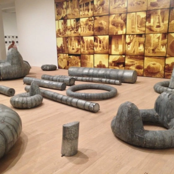 În timp ce una dintre lucrările reconstituite de artiștii români în proiectul lor - „în același timp omagiu și parodie” - îi aparține lui Andre, aceștia au inclus în performance și un enactment al protestului stârnit de omiterea Anei Mendieta. Printre celelalte lucrări recompuse efemer din corpuri, s-au numărat pictura Seagram Murals de Mark Rothko, performance-ul Tatlin’s Whisper #5 de Tania Bruguera și instalația video Workers Leaving the Factory, de Harun Farocki.