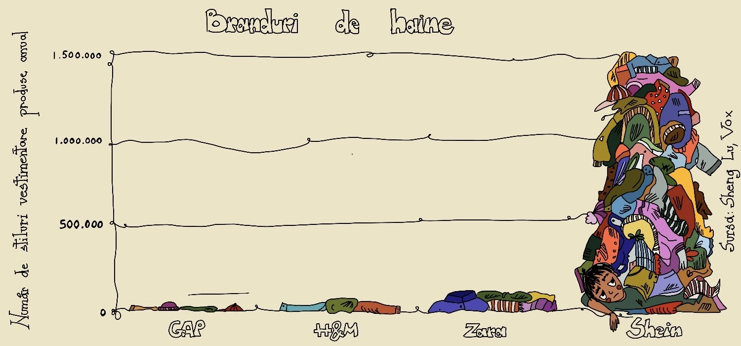 Astfel, din noiembrie 2022 și până în noiembrie 2023, Zara și H&M au adus 40.000, respectiv 23.000 de noi articole pe piață. În tot acest timp, Shein a introdus 1.5 milioane de produse. Asta înseamnă de 37 de ori mai mult decât ZARA și 65 față de H&M.
