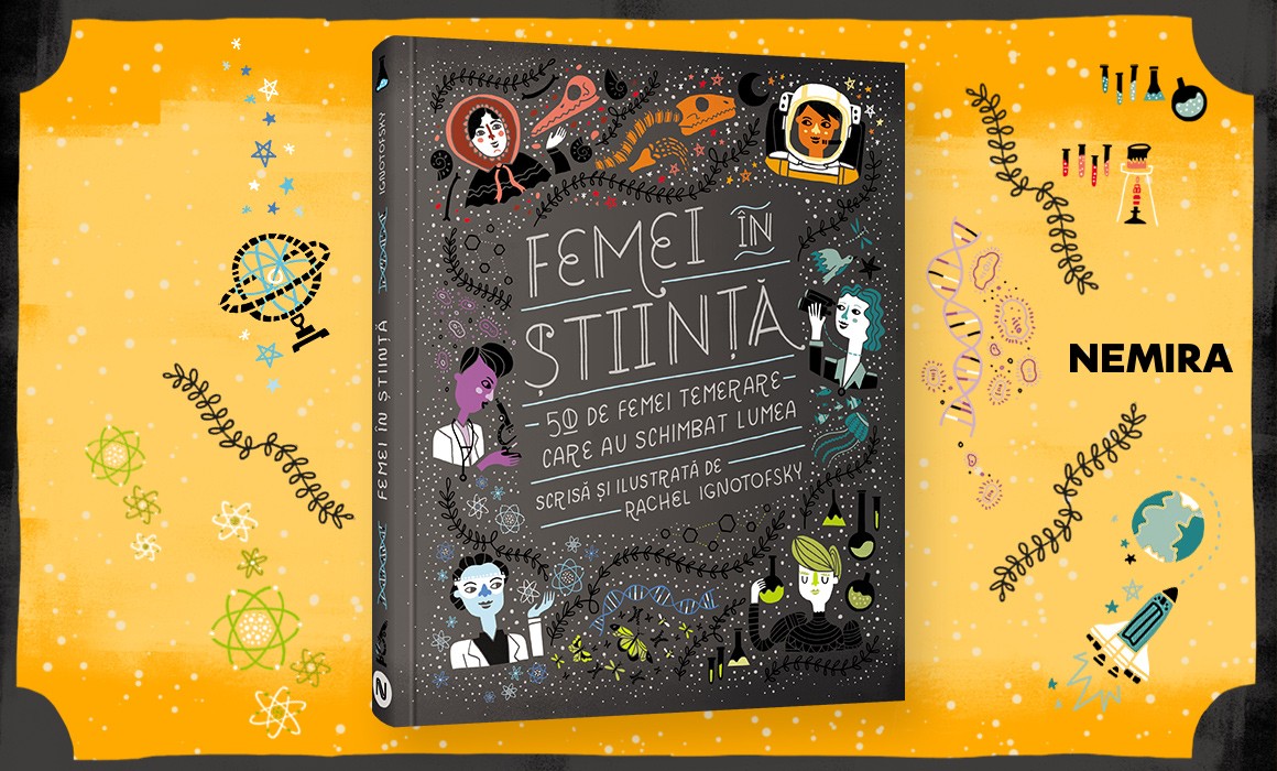 Uită-te bine în jur și găsește o fetiță. Poate fi fetița ta, o șmecheriță din vecini sau puștoaica unor prieteni. Fă-i cadou cartea asta: „Femei în știință. 50 de femei temerare care au schimbat lumea”, de Rachel Ignotofsky, proaspăt apărută la Editura Nemira în traducerea Alexandrei Florescu.