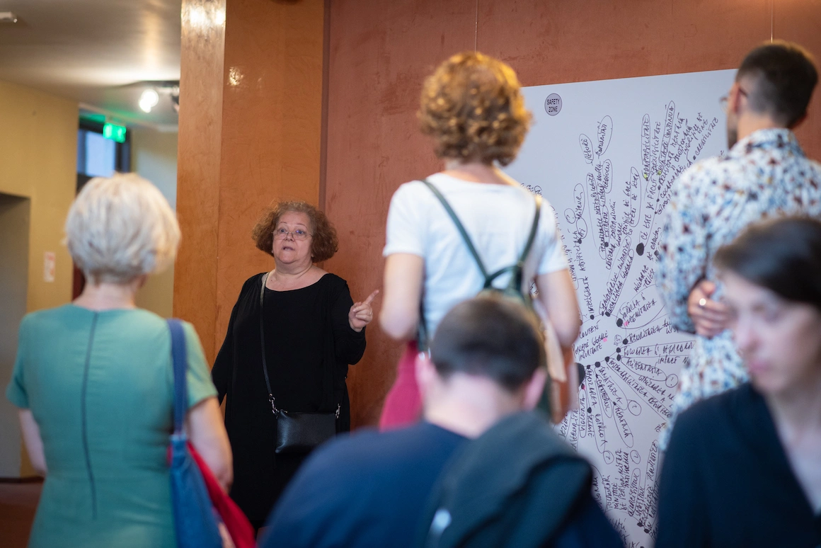 Ceva din spiritul festivalului este captat în cele două expoziții neconvenționale ale artiștilor Lia și Dan Perjovschi. În unele dintre lucrările din Lia Perjovschi, Lumea de azi și zona de siguranță – o cercetare, în structura unui soare cu raze, în centrul imaginii se află un cuvânt care este apoi derivat radial prin asocieri psiho-emoționale într-o multitudine de variante. Acest tip de contaminare culturală de bună calitate, care exersează gândirea critică, se regăsește și în structura festivalului, inclusiv în geografia lui: an de an, festivalul se extinde, nu doar în Piatra Neamț, ci și în orașele învecinate, iar din acest an, și în mediul rural. Dan Perjovschi desenează pe ferestrele Teatrului Tineretului – este o lucrare serială, Dan Perjovschi, desen de intrare, care a început într-o ediție precedentă a festivalului — și chestionează probleme acute ale zilelor noastre, de la criza culturală la războiul din Ucraina.