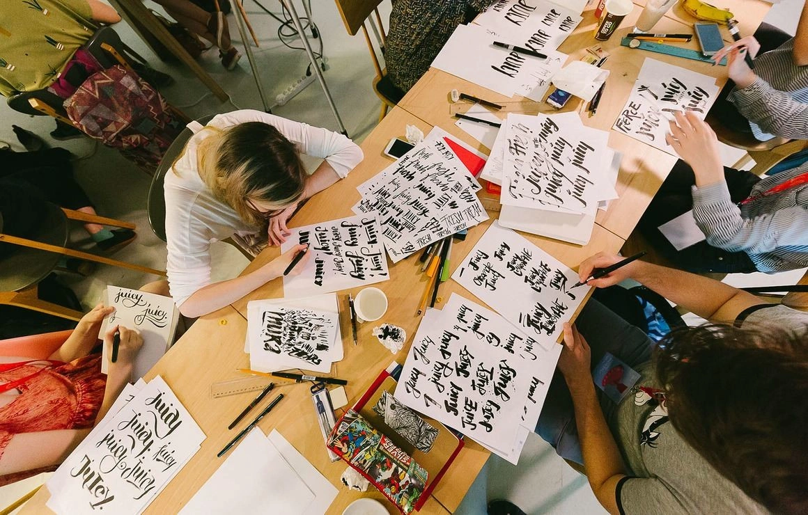 Fun fact: unul dintre cursanții ediției trecute, ilustratoarea Maria Surducan (pe care poate o știți din campaniile fără număr făcute pentru Cărturești sau din cărțile minunat ilustrate și publicate la Editura Vellant) e anul ăsta membru al echipei organizatoare de minuni. Și, de exemplu, își amintește că ce a impresionat-o cea mai tare la Visual Playground a fost „competivitatea colegială dintre participanții la workshop și generozitatea speaker-ilor. Am putut să îmi cunosc idolii și să constat că sunt minunați. Iar workshop-ul de lettering al lui Tobias Hall a fost un moment de achievement unlocked, pentru că eu am crezut toată viața că e foarte-foarte-foarte greu să faci design de literă și s-a dovedit că, dacă ai un pic de rigoare și respecți un set de reguli foarte simple, e foarte distractiv”