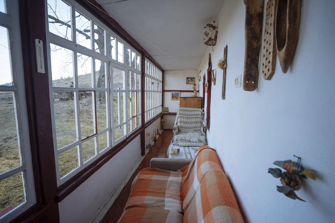 Sunt trei camere decorate într-un stil rustic plăcut și confortabil, în care nimic nu e căutat într-un sens strident „tradițional”. Pe pereți sunt multe icoane pe sticlă, unelte vechi din fier și din lemn & fotografii de familie, iar de jur-împrejur vezi covoare țărănești, taburete mici de lemn, lavițe colorate și pături grele de lână.