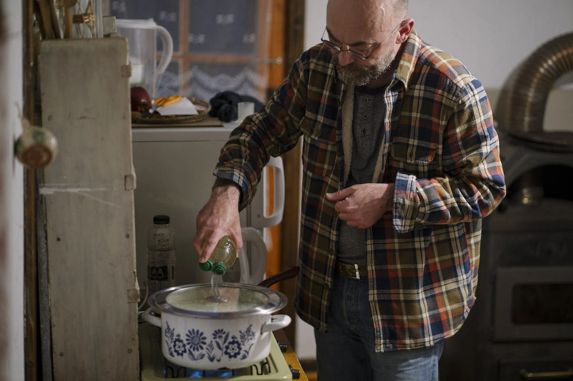 „Aici poate să se lase cu frig oricând, în orice anotimp”, zice el. „Țin minte că am venit aici într-o primăvară, prin aprilie era, și a nins atât de tare încât casa era îngropată în zăpadă. Am stat blocat aici vreo două săptămâni. Noroc că aveam cu mine vreo 40 de pachete de Carpați, plus mălai, brânză, din astea. Au fost fost două săptămâni superbe, printre cele mai frumoase din viața mea. Atunci am reușit să scriu o bucată mare din Degete mici.”