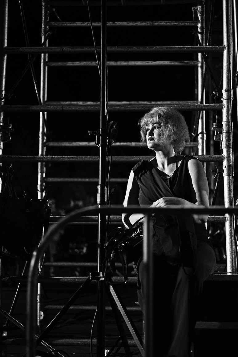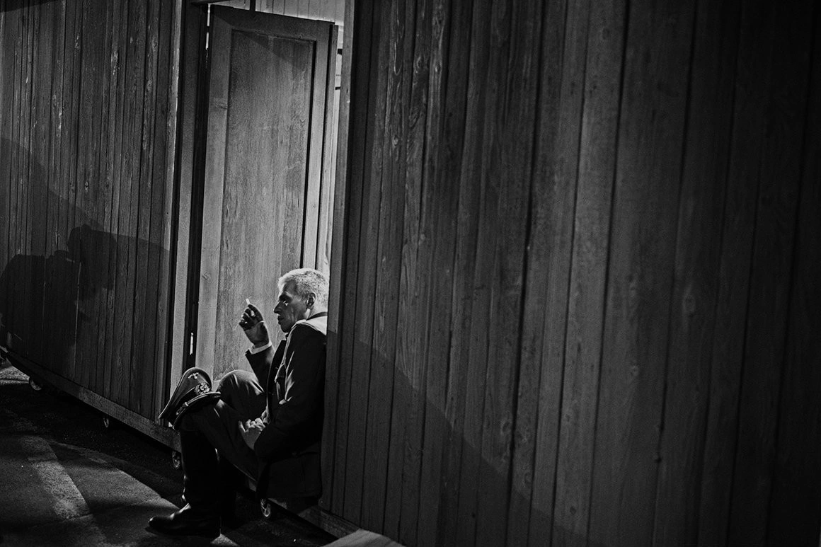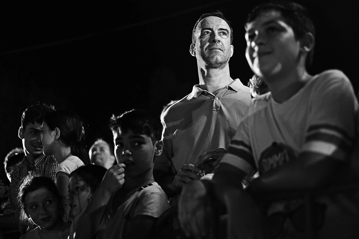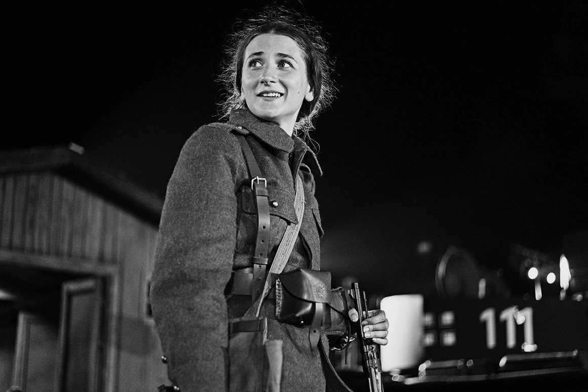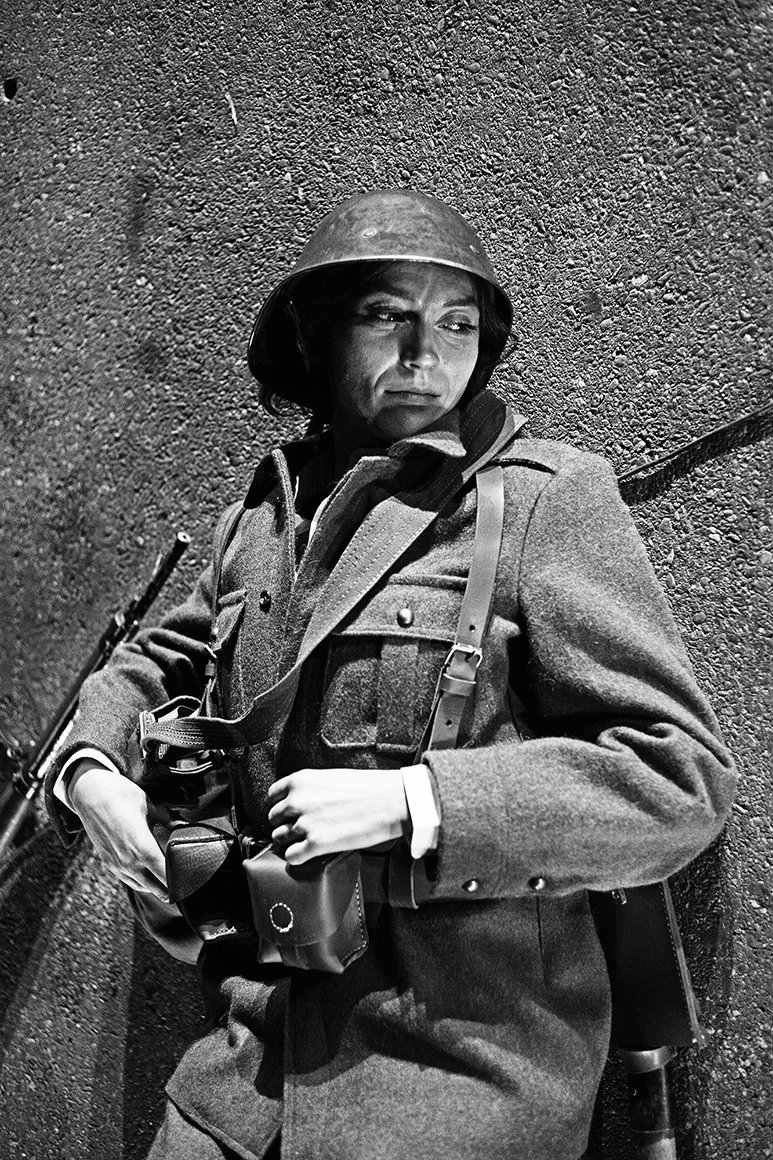 Fotografiile lui Adi Tudose au fost făcute într-una dintre nopțile de pe Calea Victoriei. O să-i găsiți în ele pe regizorul Radu Jude, regizoarea secundă Cristina Iliescu, actorii Alexandru Dabija (fabulos în rolul unui funcționar al primăriei mai degrabă relativist decât negaționist), Șervan Pavlu, Gabriel Spahiu, Alex Bogdan, pe operatorul Marius Panduru și câțiva figuranți, fără de care spectacolul tragic și ridicol al reconstituirii masacrului n-ar fi fost posibil.