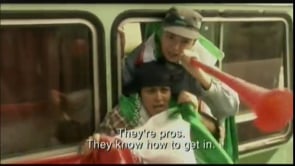 Subiectul din Offside e fotbalul, văzut din perspectiva freamătului de entuziasm pe care îl poate acesta genera în rândul mulțimilor de fani. Ca urmare, personajul principal e colectiv și se compune dintr-un grup de fete prinse că au încercat să pătrundă la un meci important al naționalei, în condițiile în care accesul pe stadion e permis doar bărbaților. Ne putem pune de acord că povestea e rudimentară (cel mult un pretext), în timp ce rezolvarea ei – o celebrare patriotică în care suntem invitați să uităm o clipă de ceea ce ne separă – e cam optimistă (cel mult o mostră de wishful thinking). Altundeva rezidă interesul acestui film, mai exact în două locuri: întâi, în felul în care Panahi, inteligență speculativă de mare finețe, se folosește de un eveniment cât se poate de real – meciul de calificare al Iranului la Cupa Mondială din 2006 – pentru a grefa pe scoarța lui o povestioară inventată, dar care are, la rândul ei, toate aparențele unui eșantion documentar. Drept pentru care straturile se amestecă, iar mizanscena ne provoacă să despărțim – dacă mai putem – apele între poveste și document. Credeți-mă pe cuvânt: plăcerea de a descoperi aceste falii prin care ficțiunea lui Panahi își croiește drum în lume e imensă. Apoi, e vorba despre spinii politici pe care cineastul îi presară pe tulpina acestei narațiuni convenționale, apți să redea fidel climatul sufocant al patriarhatului, împotriva cărora câteva fete curajoase încearcă să asambleze o rebeliune, fie ea și firavă.
