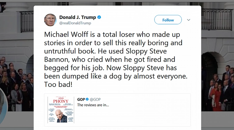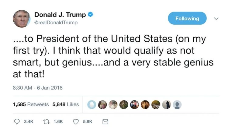 Răspunsul președintelui a fost previzibil: a amenințat că-l va da în judecată pe autor și a încercat să împiedice publicarea cărții, despre care a zis că e o „operă de ficțiune”. După care a ieșit cu un tweet în care se declara „un geniu stabil”.