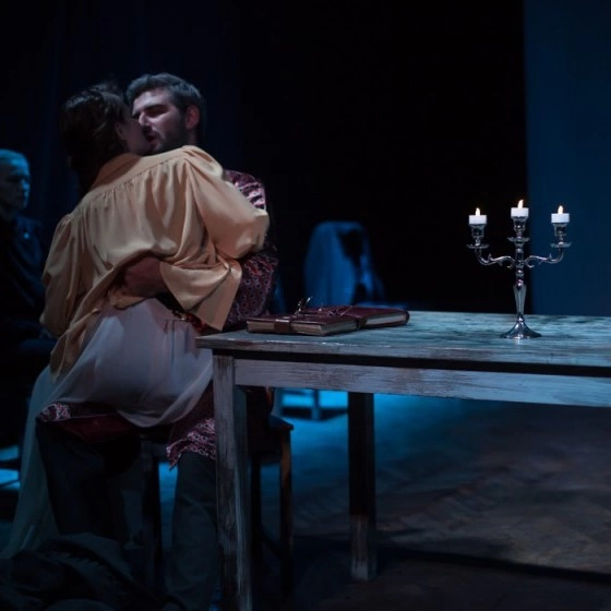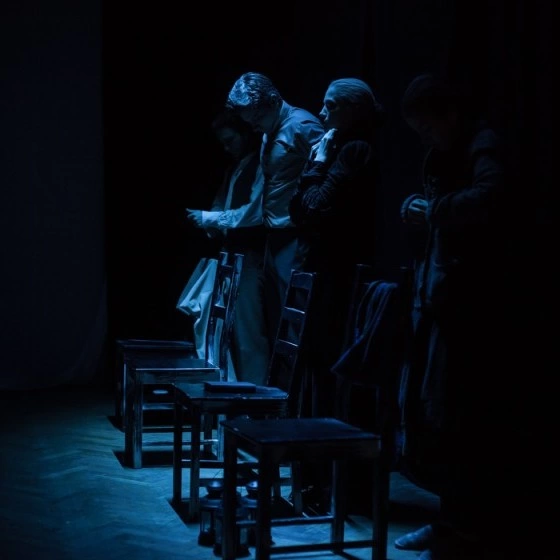 Câteva scaune tipice unui peron; Richard Bovnoczki și Șerban Pavlu, care dau unui text minunat un contur în forță; Andrei și Andreea Grosu la cârmă. Ai în față un fost pușcăriaș, care crede că Dumnezeu nu e doar un gardian, și un sinucigaș ateu, care își caută liniștea. Cele două extreme între care trăim toți: credința că totul are un sens și luciditatea amară. O oră jumate în care primești ghies după ghies.