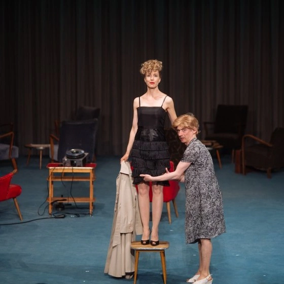 Am alergat până la autobuzul care duce publicul în hala în care se joacă spectacolul lui Ostermeier. O hală imensă s-a umplut două zile la rând cu sute de oameni și cu un decor super retro, super fain. Eu eram dintre cei care n-au văzut filmul, n-au citit cartea/scenariul, nu știu germană, dar spectacolul e prietenos, nu mușcă. Acum vreau să văd și filmul lui Fassbinder.