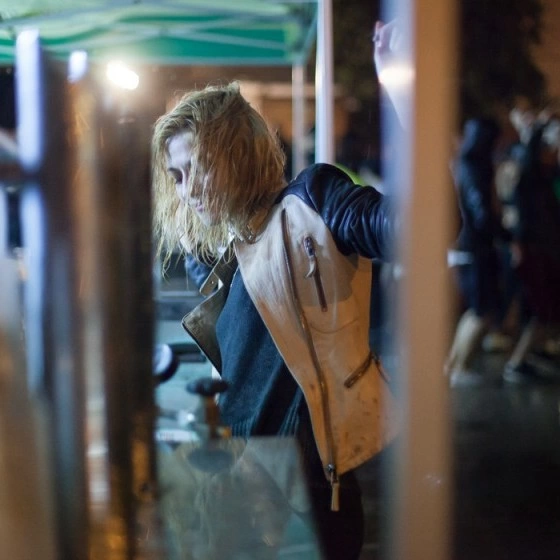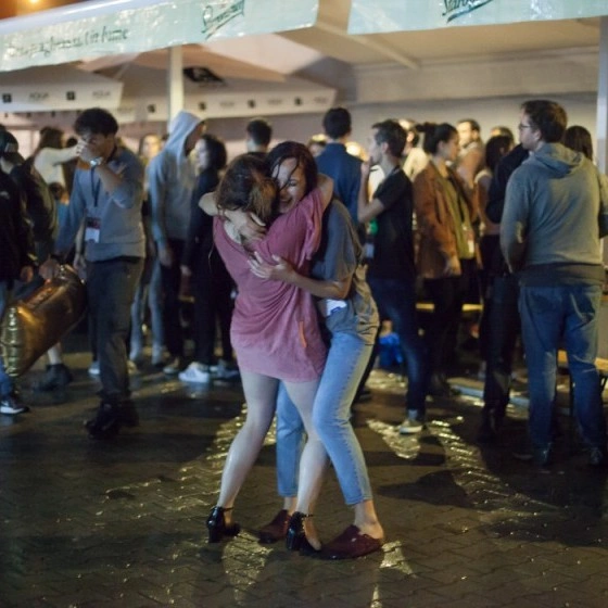 În curtea teatrului sunt mai puține umbrele decât oameni, și ploaia își face loc oricum prin orice fisură. Totuși, muzica răsună. La coadă la bar, un băiat înalt, cu geacă de piele, se întoarce spre mine, face mâna căuș, strânge niște apă de ploaie în ea, și o bea în timp ce mă privește fix în ochi.