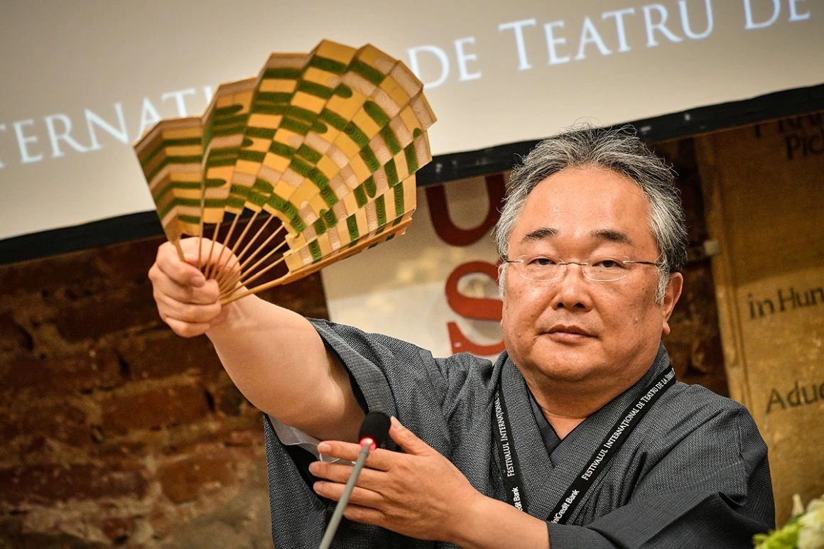 Tot despre ritual e vorba și în teatrul Nō, doar că aici codurile sunt fixe și parcursul e clar. Am asistat la un dialog între George Banu și actorul japonez Akihiro Yamamoto, o conferință care-a devenit un spectacol în sine. Yamamoto, îmbrăcat într-un costum tradițional japonez, a vorbit și despre rolul evantaiului în teatrul Nō și ne-a arătat câteva mișcări concrete, unele dintre ele fixate timp de secole. Sunt unele gesturi pe care ai voie să le faci și altele pe care n-ai voie să le faci pe scenă. „Brațul și încheietura trebuie să rămână nemișcate când miști evantaiul”, spunea artistul japonez. „O mișcare greșită e ca o sinucidere pentru un actor”. Fiecare rotire a evantaiului are o semnificație clară: sufletul care pleacă spre cer, evantaiul ca scut în război sau evantaiul ca sabie. „Spre deosebire de filmele cu samurai, în care ai multe efecte sonore și vizuale, în teatrul Nō e suficient un evantai și o simplă zvâcnire a piciorului ca să arăt că am omorât pe cineva.” E un tip de teatru care nu-ți vorbește în mod explicit, ci-ți cere ție, ca spectator, nu doar să vezi, ci să-ți și imaginezi.