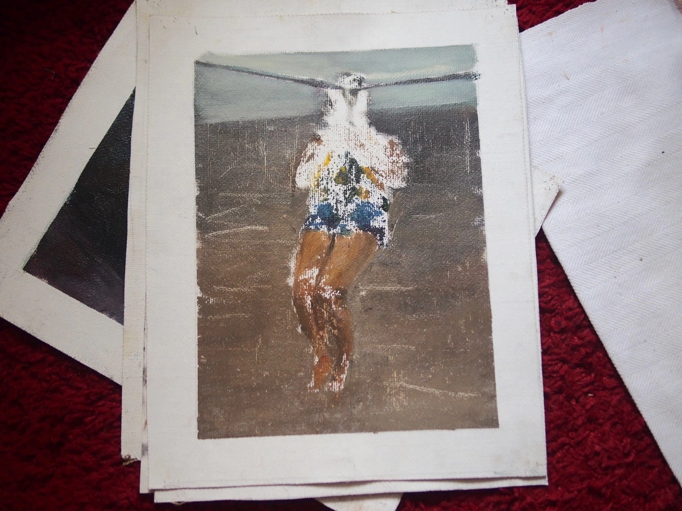Până atunci lucrase în atelierul Universității de Artă și Design, secția de Pictură, care e chiar în mijlocul Parcului Central din Cluj, sau acasă. Instalată în noul atelier, a observat că, odată cu intimitatea unui spațiu doar al tău, vine și libertatea să experimentezi, să stropești. Și-a luat inima în dinți și a început să exploreze pictura figurativă, față de care avea unele reticențe. „Consideram că e o zonă în care poate că am probleme de construcție când vine vorba de rigurozitatea asta anatomică”, spune Flavia. Proiectele ei dinainte erau într-o zonă mai abstractă. Dar a descoperit că nu o deranjează să încerce chestii care poate vor fi eșecuri. Și-a asumat că asta e parte din procesul ei creativ.