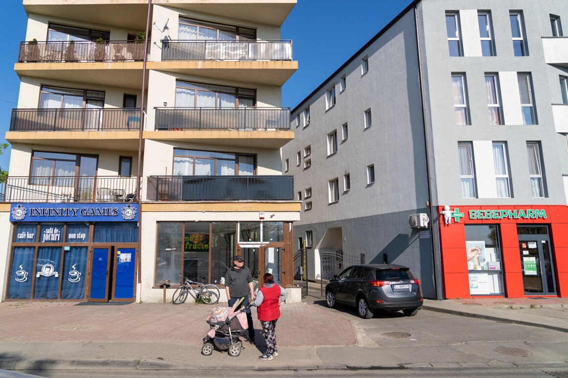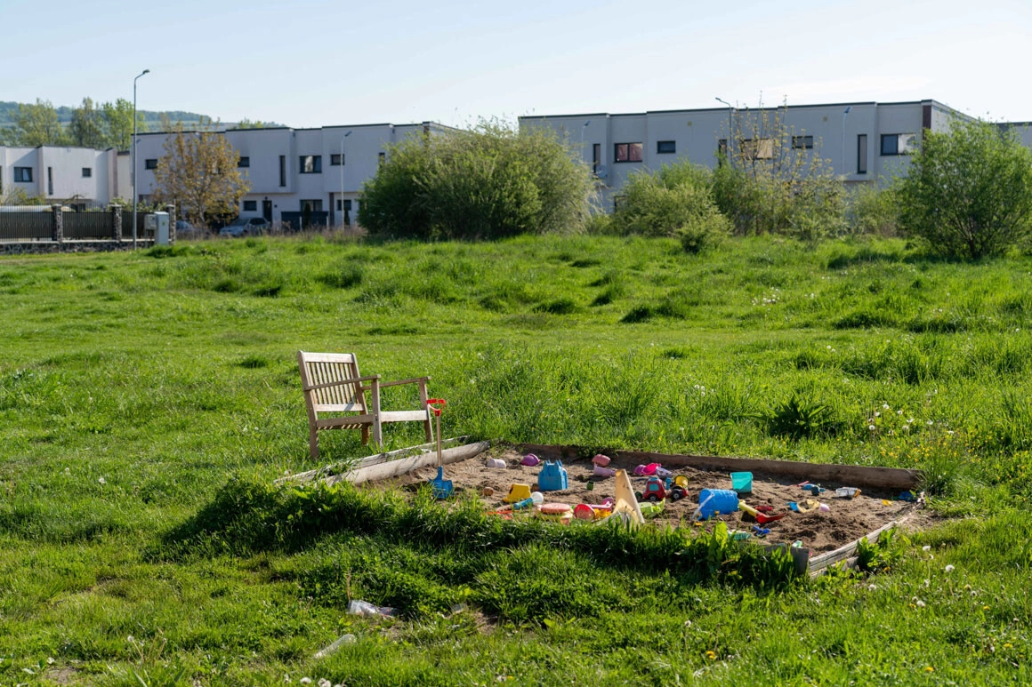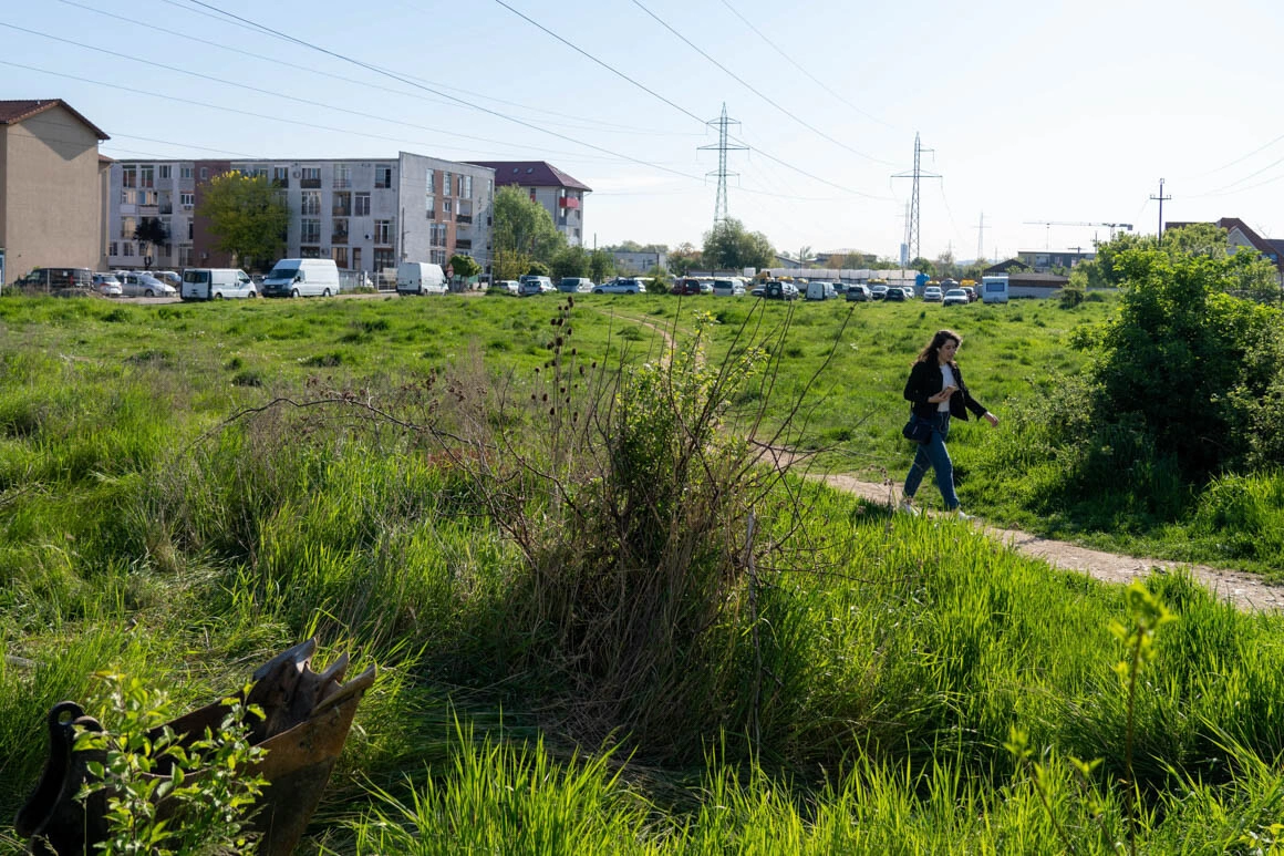 Ne întoarcem și dăm de blocuri noi, construite acum vreo jumătate de an. „Astea erau singurele din zonă cu 1.000 pe metru pătrat. Acum sunt, evident, 1.500 pe metru pătrat”, ne spune Flo. Zonele dintre blocuri sunt parcări pavate, ce se întind până sub geamuri. Locatarii au încercat să convertească ce rămâne pe mijloc într-un soi de spațiu public: din niște paleți au făcut bănci, iar pe lângă ele trec seara copii pe triciclete.