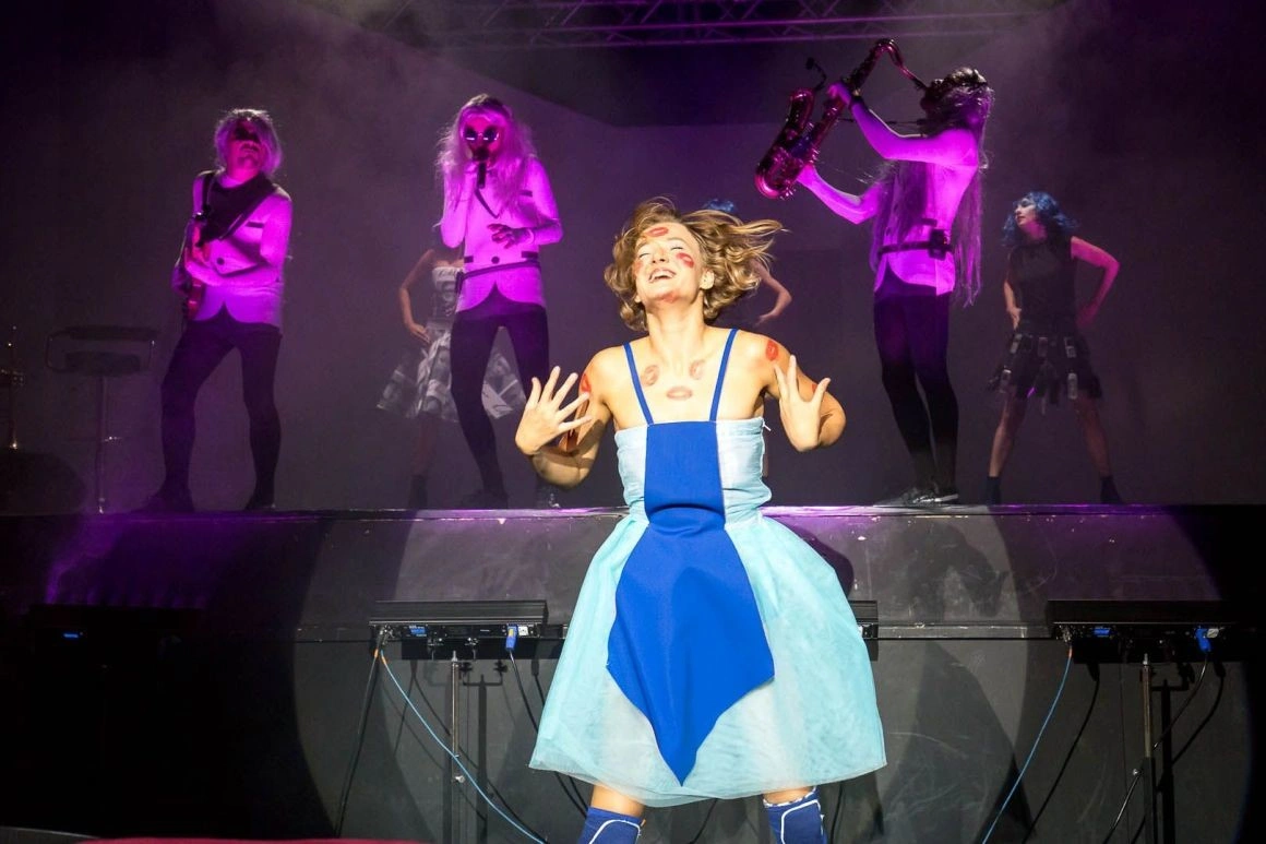 - Tot de la Sfântu Gheorghe secuime, de la Teatrul „Tamási Áron”, Alice, în regia lui László Bocsárdi, un concert rock live, cumva gotic şi oarecum queer - prima replică din spectacol îi aparţine lui Alice: „Lumea asta devine din ce în ce mai queer” - este o altă demenţă, psihedelică, în care personajele, mai mult sau mai puţin ale lui Lewis Carroll, alunecă în visul lui Alice printr-un lift. Actorii sunt excelenţi, muzica e bună (sZempöl Offchestra), scenografia e impresionantă ca imagine, execuţie şi utilitate, iar Mátray László (asta e pentru fanele actorului) este de nerecunoscut într-o variantă de Alice.