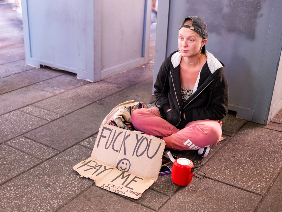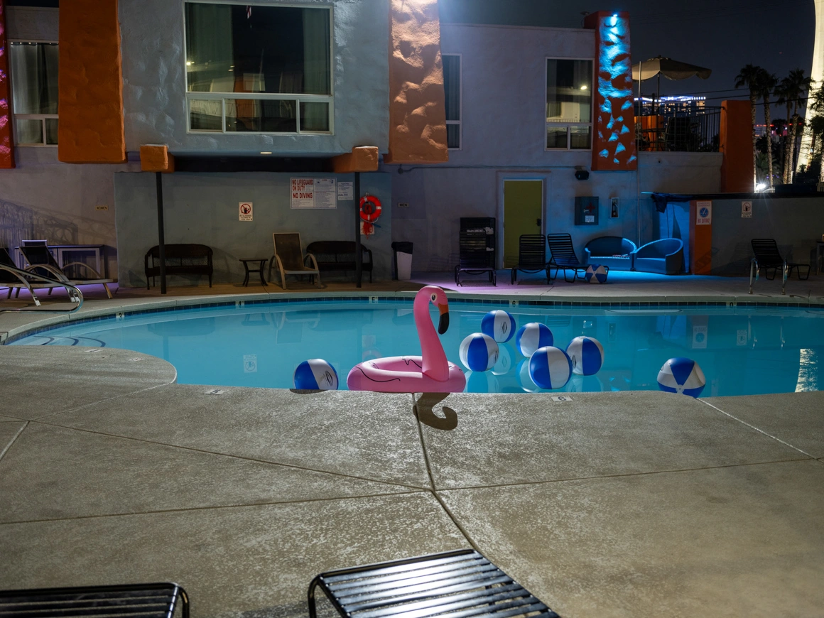 Ajungem în Las Vegas. Ne cazăm într-un motel de la marginea drumului principal, în imediata apropiere a unor „Chapels of Love”, acele centre în care poți să te căsătorești pe loc, fără prea multe formalități. Orașul pare o mare butaforie scenografică, în același timp impresionant și plictisitor. În centrul orașului, pe Las Vegas Boulevard, întâlnești un mix foarte ciudat de oameni: turiști dornici de distracție și persoane ajunse la capătul puterilor, distruse de opioide. Toți par să conviețuiască într-o înțelegere reciprocă. Ceea ce mi-a atras atenția de la bun început, în legătură cu acești oameni disperați care trăiesc pe străzi, este că nu cerșesc; sunt atât de deconectați, atât de spaced out, încât nu îți cer bani. Te lasă în pace și vor doar să fie lăsați în pace. În afară de câteva fotografii „de trimis acasă”, nu am reușit să fac nimic. Las Vegas mi s-a părut cea mai fadă locație din câte am vizitat: dezolant și sclipitor.