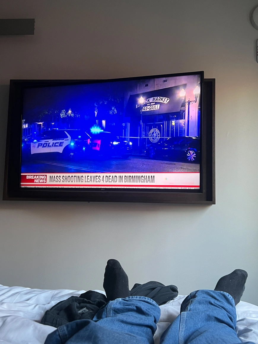 Dormim ciudat: Sandu și Dani se culcă foarte devreme, în jurul orei 20:00; Sandu, epuizat de orele de condus, iar Dani, pentru a se trezi la 3:00 dimineața și a avea videocall-uri de coordonare cu echipele de acasă implicate în șantierul Scânteia+, care începuse cu câteva zile înaintea plecării noastre. Părăsim fiecare cazare pe la 5:30 dimineața, încărcăm mașina și plecăm spre următoarea destinație. Facem rezervările pentru următoarea cazare din mers, folosind o conexiune de internet mereu precară. Fiecare dintre noi a început să coaguleze material. Am fotografiat destul de mult și, în paralel, am filmat cu telefoanele mobile partea de documentare destinată platformei online They Americans. În fiecare seară, după ce ne instalăm în hotel, trimitem materialele pentru postare, ca un fel de jurnal zilnic.
