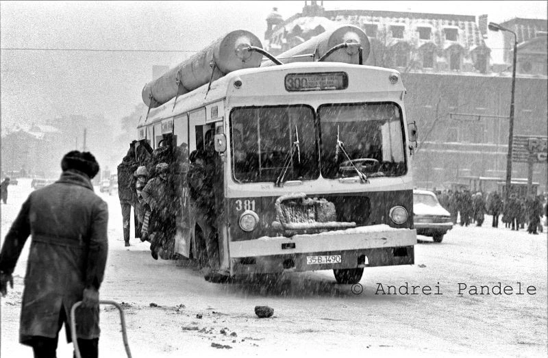 Habar n-avea. Mergeam tot timpul cu aparatul de fotografiat. Oamenii merg pe stradă și nu văd decât ceea ce îi interesează. Eu m-am antrenat vreo zece ani de zile să văd și ce nu mă interesează. În decembrie ‘88, institutul la care lucram m-a trimis să iau niște planuri. Undeva prin fața statuilor [statuia cu lupoaica de pe Nicolae Bălcescu], ningea, zăpadă de 3, 4 centimetri pe jos, turnau asfalt fierbinte peste zăpadă. În ziua următoare era Ziua Republicii, și urma să treacă tovarășul. Unde turnau bitum peste zăpadă ieșeau niște nori, aburi. Și așteptam să treacă un autobuz. Aburul alb pe zăpadă nu se vede. Dar când trece un autobuz, autobuzul e în umbră și albul se vede mult mai bine. Și doi milițieni aranjau circulația să fac eu poze mai bune. Ei aveau senzația că eu fotografiez modernitatea Bucureștiului, deși eu de fapt fotografiam o aberație totală.