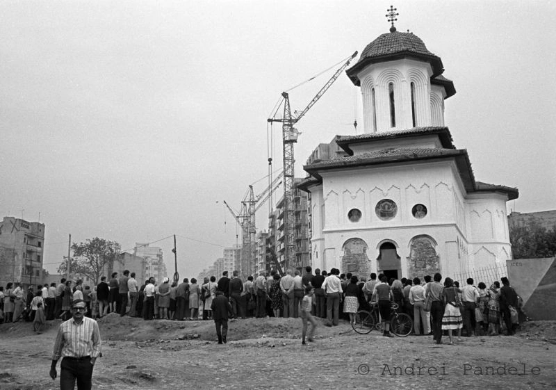 Înainte de ‘89, Andrei Pandele a lucrat ca arhitect, iar în paralel, a făcut fotografie de sport. Dar printre zecile de mii de clișee de fotografie sportivă, a strecurat niște cadre care au rămas în sertar mai mult de zece ani. Le-a printat abia la câțiva ani după Revoluție. Sunt fotografii care surprind distrugerile din perioada comunistă.