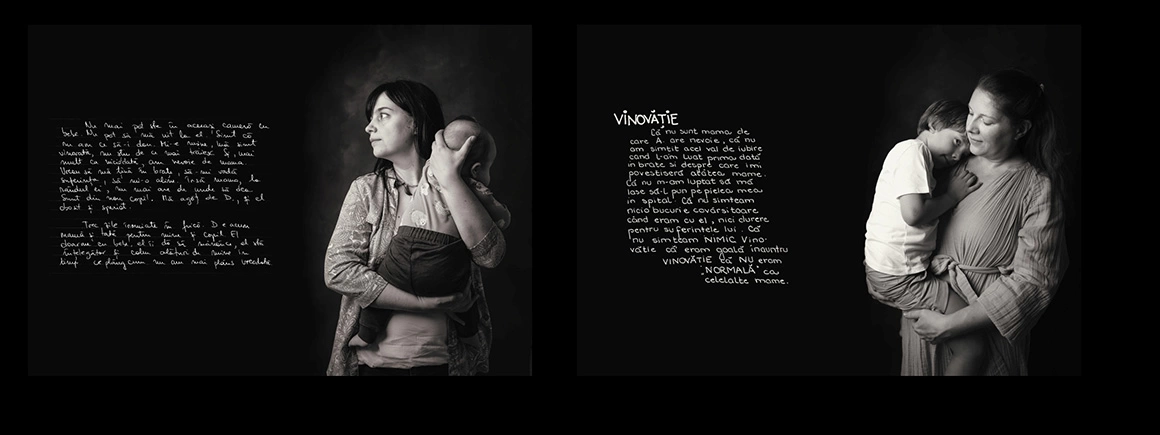 Postpartum a însemnat, dincolo de toate, o descoperire a faptului că nu mi se întâmplă doar mie asta. Țin minte că în perioada postnatală căutam tot soiul de articole, interviuri, cărți, despre depresia postpartum și nu găseam decât aceleași informații scoase parcă dintr-un glosar. Nu mi-a fost suficient, așa că am zis să aflu singură – într-o perioadă în care eram pe drumul spre vindecare – de ce, cum, încotro. Astfel am invitat 24 de mame să își scrie povestea, le-am fotografiat împreună cu copiii și copilele lor, și a ieșit Postpartum.