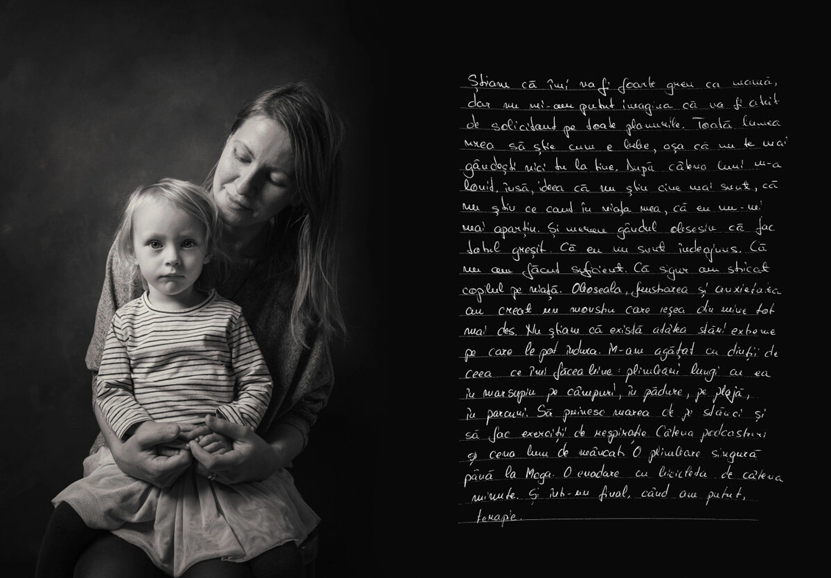 POSTPARTUM e un proiect în desfășurare, care pornește de la propria-mi experiență cu depresia postnatală, o călătorie complicată, timp de doi ani de zile. Proiectul relatează poveștile a 22 de mame a căror maternitate a fost afectată de același tip de depresie, și evocă dificultățile, întrebările, emoțiile și trăirile lor din perioada postpartum.