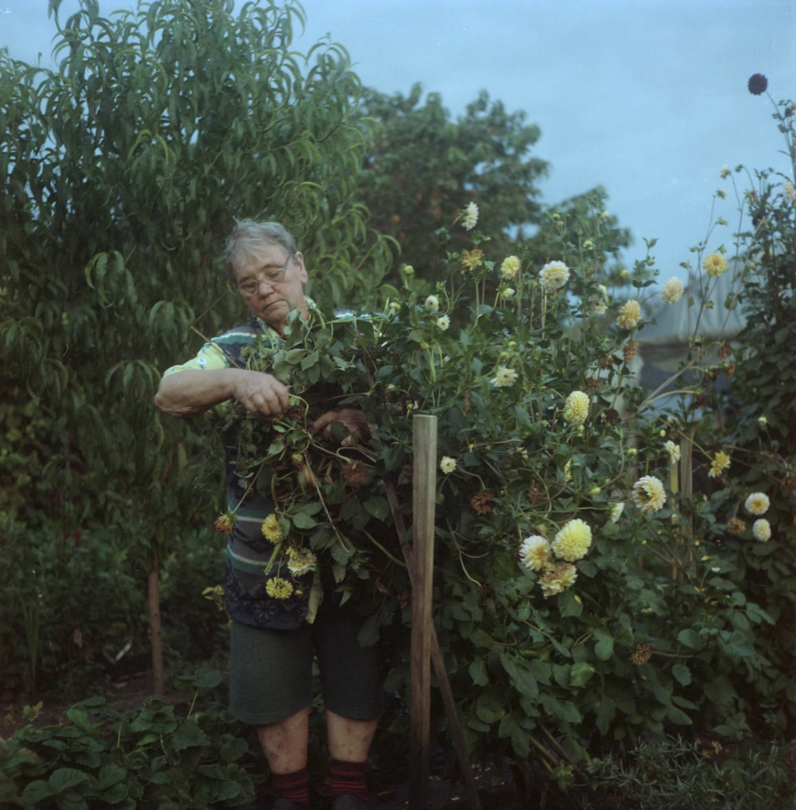 Era toamna lui 2015 când am decis să petrec o perioadă cu ai mei la Mediaș, să mă apuc de școala de șoferi și să stau până simt că îmi revin și îmi dau seama încotro s-o apuc. Am început să fac poze încercând să înțeleg cum sunt eu acasă, cum sunt ei, cum trăiesc, ce valori au și cum ne vedem reciproc. Eram uimită de universul pe care familia mea l-a creat: un fel de paradis natural construit prin foarte multă muncă. În State Unite, rar vedeai pe cineva să grădinărească, or ai mei din asta trăiesc și cu asta se hrănesc. Mănâncă ce produc și vând la piață ce e în plus. Am redescoperit legătura cu pământul, m-am reapucat și eu de grădinărit. Când nu grădinăream, fotografiam și viceversa. Era un fel de terapie și reconectare. Cumva trebuia să ne cunoaștem, ei să vadă cine am devenit, iar eu să văd cum au îmbătrânit. Fețele lor trebuiau să fie reîntipărite în memoria mea, dar și pe peliculă. Totul trebuia fotografiat pentru că totul era nou, cu bune și rele.
